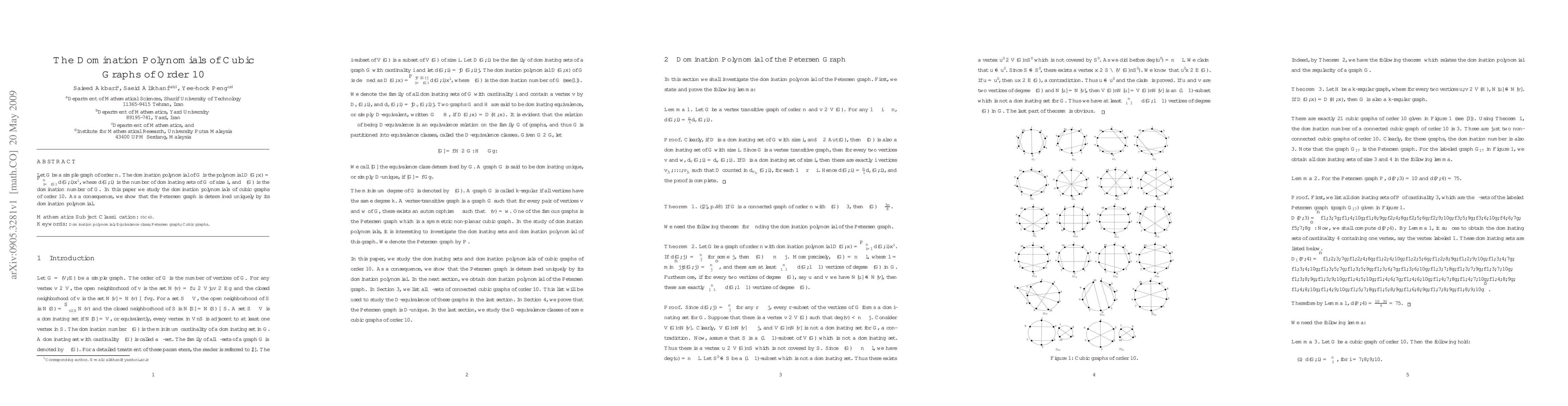 This paper investigates the domination polynomials of cubic graphs with 10 vertices, demonstrating that the Petersen graph can be uniquely identified by its domination polynomial.