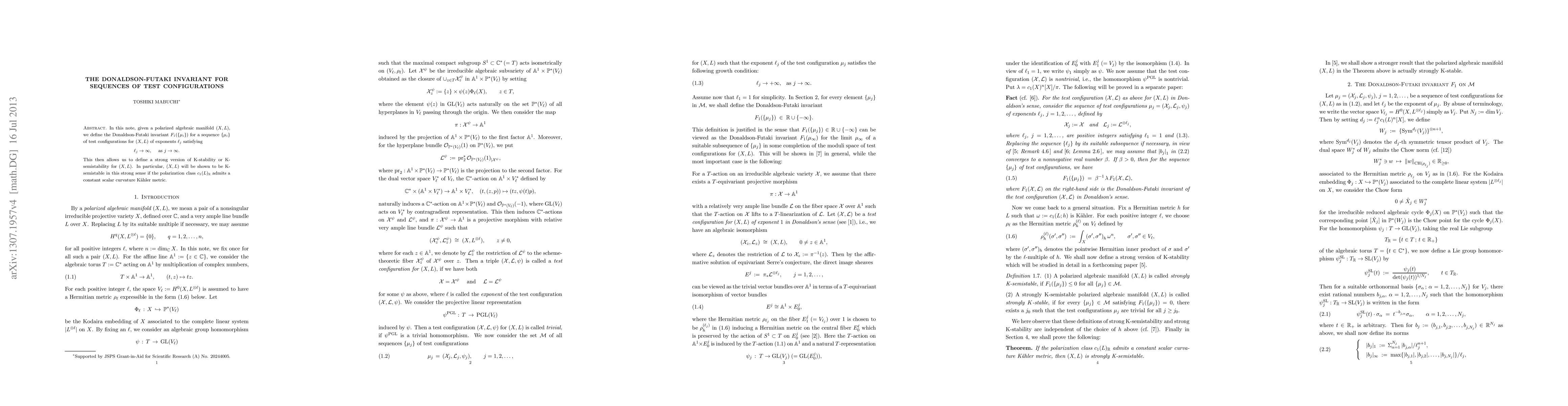 In this note, given a polarized algebraic manifold $(X,L)$, we define the Donaldson-Futaki invariant for a sequence of test configurations for $(X,L)$ with exponents tending to infinity. This then allows us to define a strong version of K-stability or K-semistability for $(X,L)$. In particular, $(X,L)$ will be shown to be K-semistable in this strong sense if the polarization class $c_1(L)$ admits a constant scalar curvature Kaehler metric.