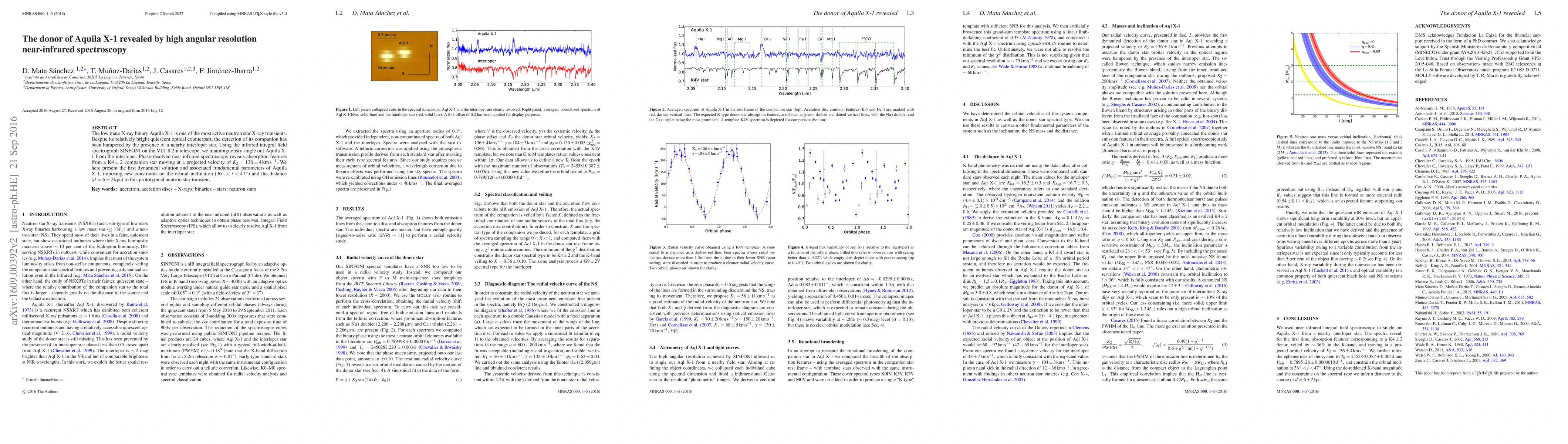 This study uses high angular resolution near-infrared spectroscopy to identify the companion star of the neutron star X-ray binary Aquila X-1, revealing it to be a K4 star with a projected velocity of 136 ± 4 km/s. The research provides the first dynamical solution and fundamental parameters, constraining the orbital inclination and distance to the system.