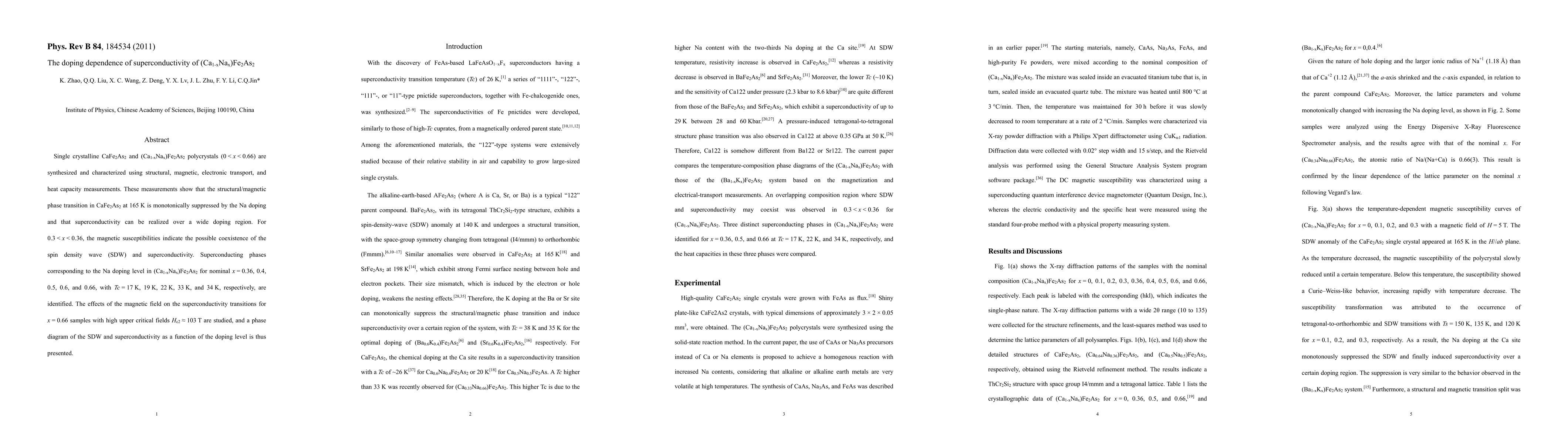 Single crystalline CaFe2As2 and (Ca1-xNax)Fe2As2 polycrystals (0 < x < 0.66) are synthesized and characterized using structural, magnetic, electronic transport, and heat capacity measurements. These measurements show that the structural/magnetic phase transition in CaFe2As2 at 165 K is monotonically suppressed by the Na doping and that superconductivity can be realized over a wide doping region. For 0.3 < x < 0.36, the magnetic susceptibilities indicate the possible coexistence of the spin density wave (SDW) and superconductivity. Superconducting phases corresponding to the Na doping level in (Ca1-xNax)Fe2As2 for nominal x = 0.36, 0.4, 0.5, 0.6, and 0.66, with Tc = 17 K, 19 K, 22 K, 33 K, and 33 K, respectively, are identified. The effects of the magnetic field on the superconductivity transitions for x = 0.66 samples with high upper critical fields Hc2 \approx 103 T are studied, and a phase diagram of the SDW and superconductivity as a function of the doping level is thus presented.