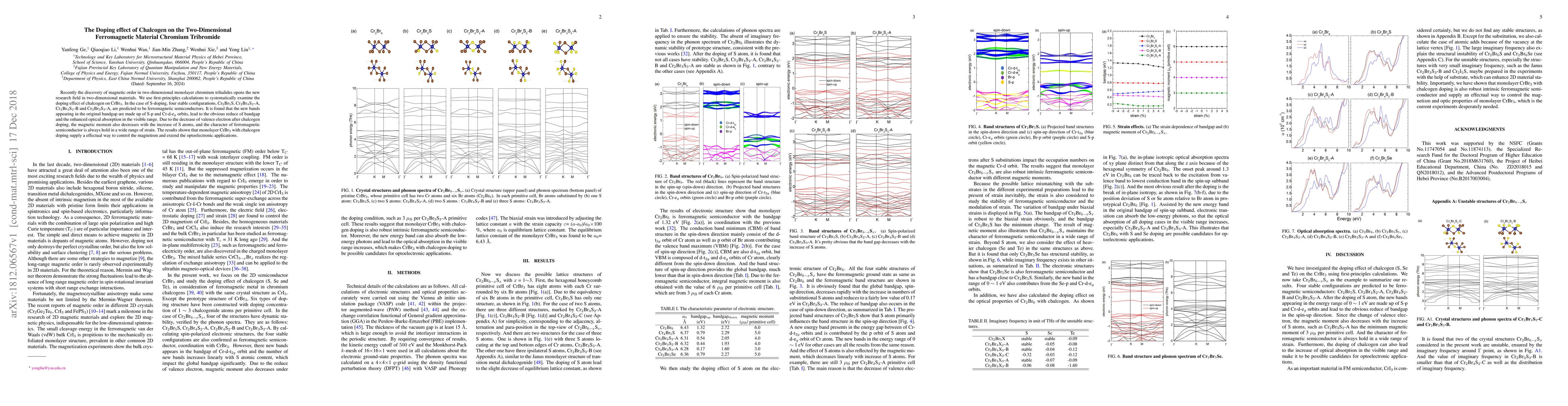Recently the discovery of magnetic order in two-dimensional monolayer chromium trihalides opens the new research field in two-dimensional materials. We use first-principles calculations to systematically examine the doping effect of chalcogen on CrBr3. In the case of S-doping, four stable configurations, Cr2Br5S, Cr2Br4S2-A, Cr2Br4S2-B and Cr2Br3S3-A, are predicted to be ferromagnetic semiconductors. It is found that the new bands appearing in the original bandgap are made up of S-p and Cr-d-egorbits, lead to the obvious reduce of bandgap and the enhanced optical absorption in the visible range. Due to the decrease of valence electron after chalcogen doping, the magnetic moment also decreases with the increase of S atoms, and the character of ferromagnetic semiconductor is always hold in a wide range of strain. The results shown that monolayer CrBr3with chalcogen doping supply a effectual way to control the magnetism and extend the optoelectronic applications.