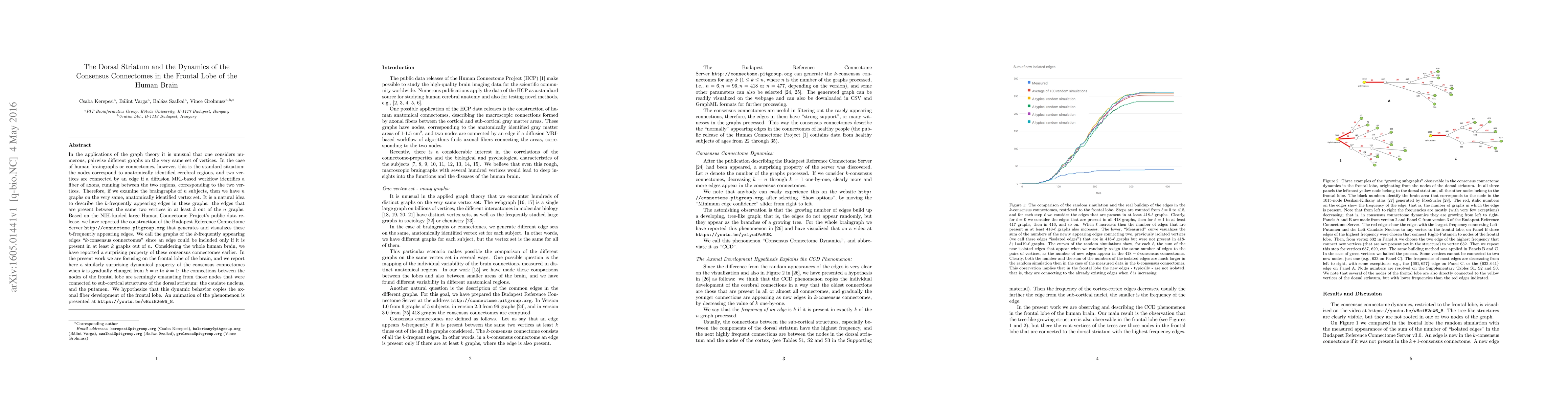 This paper explores the dynamics of consensus connectomes in the frontal lobe, revealing that connections frequently appear between nodes linked to the dorsal striatum's caudate nucleus and putamen. The study hypothesizes that this pattern mirrors the development of axonal fibers in the frontal lobe.