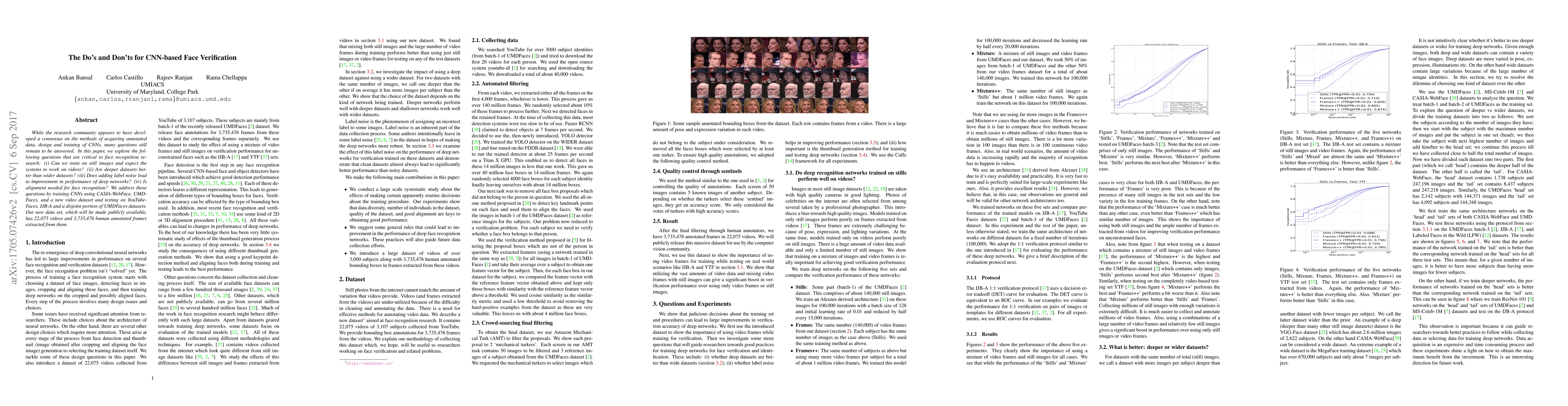 This paper investigates critical questions for CNN-based face verification, including the effectiveness of training on still images for video applications, the benefits of deeper versus wider datasets, the impact of label noise, and the necessity of face alignment. The study uses diverse datasets, including a newly introduced video dataset with extensive human-annotated frames.