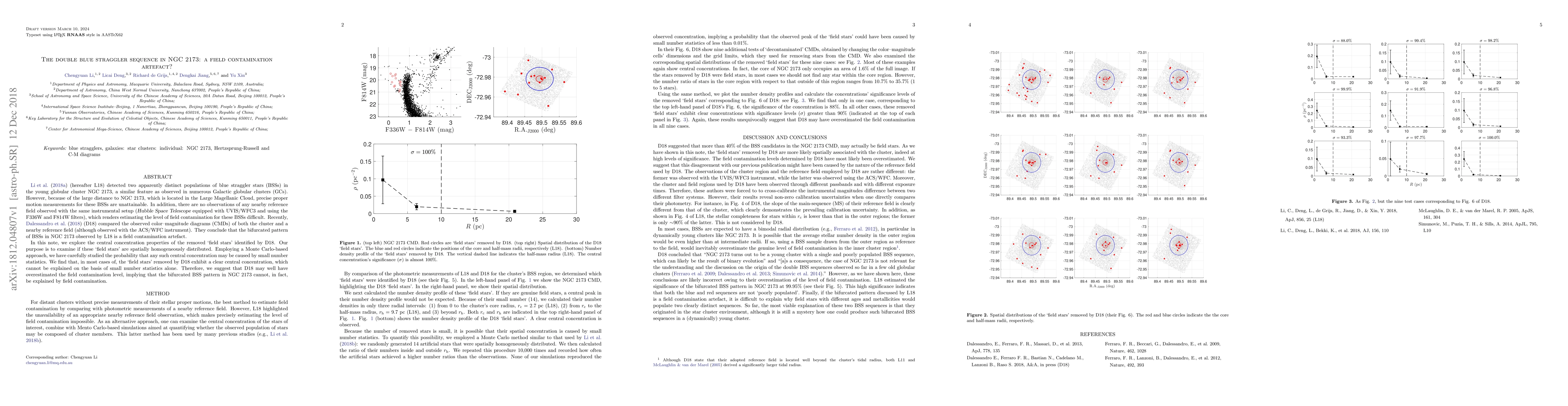 Li et al. (2018) identified two distinct populations of blue straggler stars in NGC 2173, but Dalessandro et al. (2018) suggested this pattern is due to field contamination. A new study using a Monte Carlo approach found that the "field stars" exhibit a central concentration, suggesting field contamination is overestimated and the BSS pattern in NGC 2173 is likely genuine.