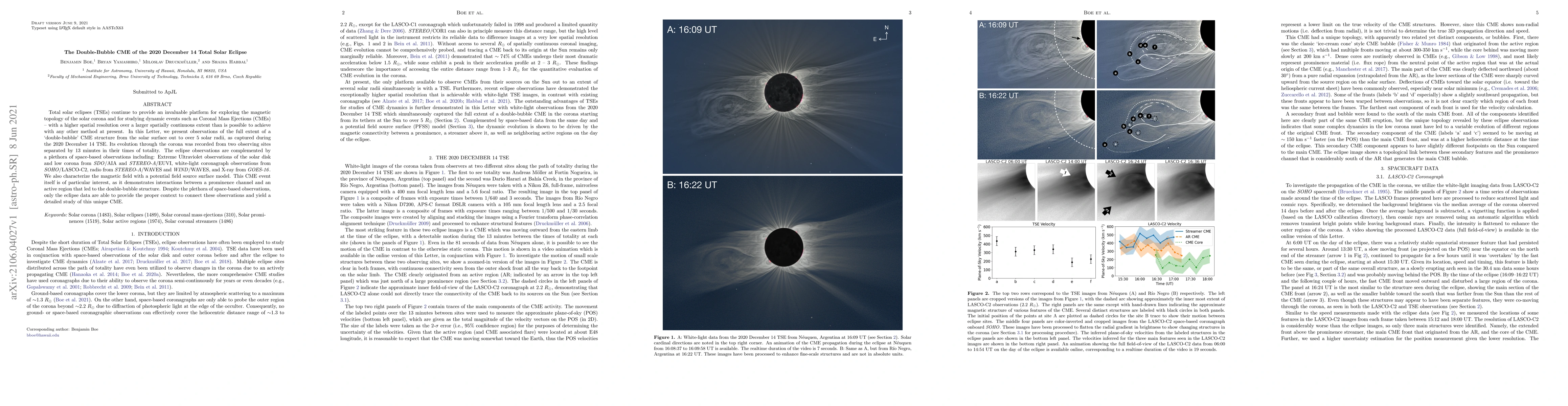 Total solar eclipses (TSEs) continue to provide an invaluable platform for exploring the magnetic topology of the solar corona and for studying dynamic events such as Coronal Mass Ejections (CMEs) -- with a higher spatial resolution over a larger spatially continuous extent than is possible to achieve with any other method at present. In this Letter, we present observations of the full extent of a `double-bubble' CME structure from the solar surface out to over 5 solar radii, as captured during the 2020 December 14 TSE. Its evolution through the corona was recorded from two observing sites separated by 13 minutes in their times of totality. The eclipse observations are complemented by a plethora of space-based observations including: Extreme Ultraviolet observations of the solar disk and low corona from SDO/AIA and STEREO-A/EUVI, white-light coronagraph observations from SOHO/LASCO-C2, radio from STEREO-A/WAVES and WIND/WAVES, and X-ray from GOES-16. We also characterize the magnetic field with a potential field source surface model. This CME event itself is of particular interest, as it demonstrates interactions between a prominence channel and an active region that led to the double-bubble structure. Despite the plethora of space-based observations, only the eclipse data are able to provide the proper context to connect these observations and yield a detailed study of this unique CME.