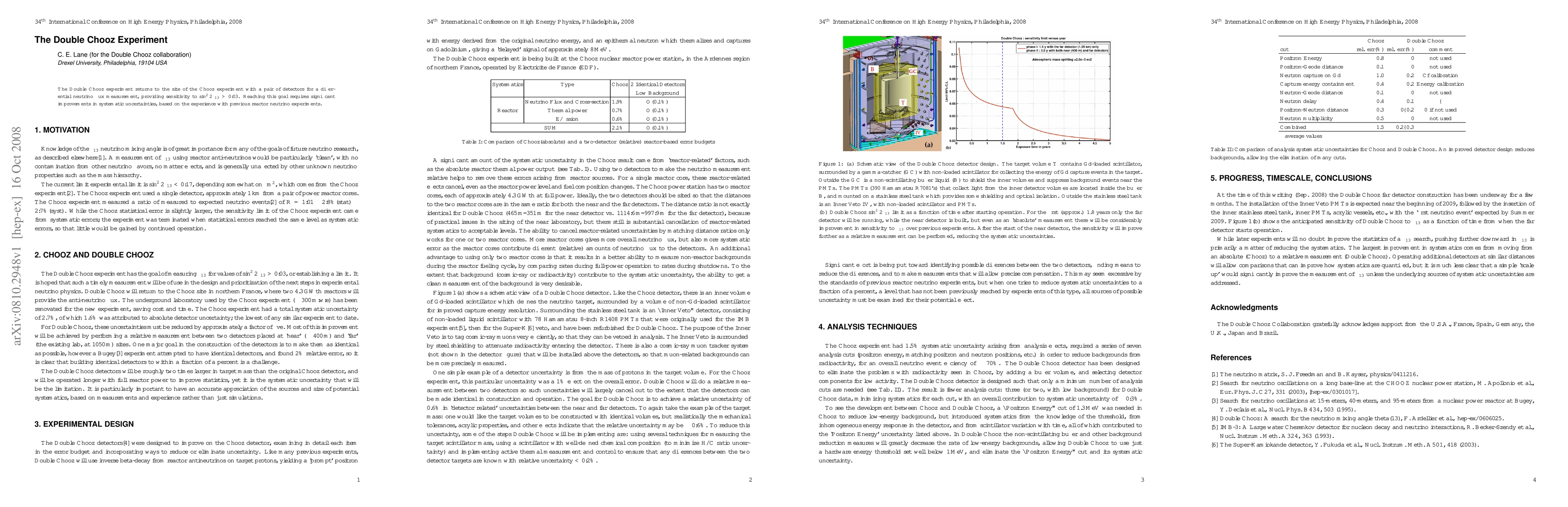 The Double Chooz experiment returns to the site of the Chooz experiment with a pair of detectors for a differential neutrino flux measurement, providing sensitivity to sin^2(2theta13) > 0.03. Reaching this goal requires significant improvements in systematic uncertainties, based on the experience with previous reactor neutrino experiments.