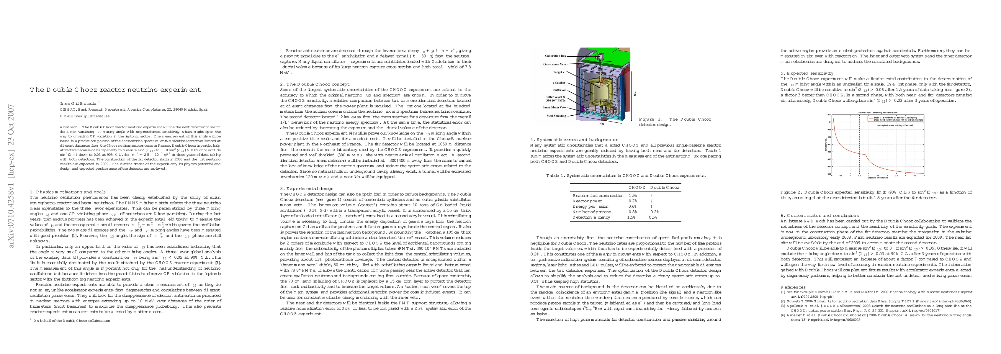 The Double Chooz experiment aims to detect the non-vanishing theta13 mixing angle with high sensitivity, potentially revealing CP violation in the leptonic sector. It employs two identical detectors at different distances from French reactor cores to precisely compare antineutrino spectra.