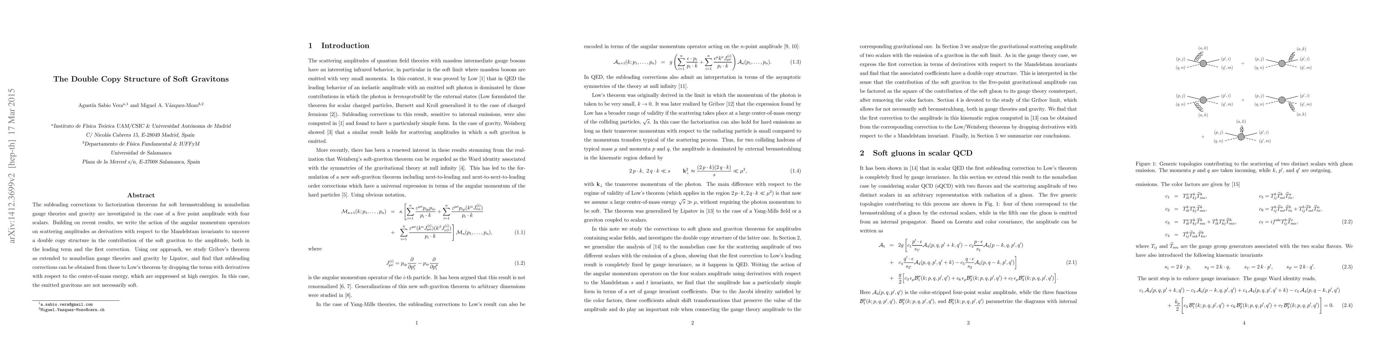This paper investigates the double copy structure in soft graviton contributions to scattering amplitudes, revealing a connection between nonabelian gauge theories and gravity. It demonstrates that subleading corrections to Gribov's theorem can be derived from those to Low's theorem by omitting suppressed terms, highlighting the role of the soft graviton in high-energy scattering processes.