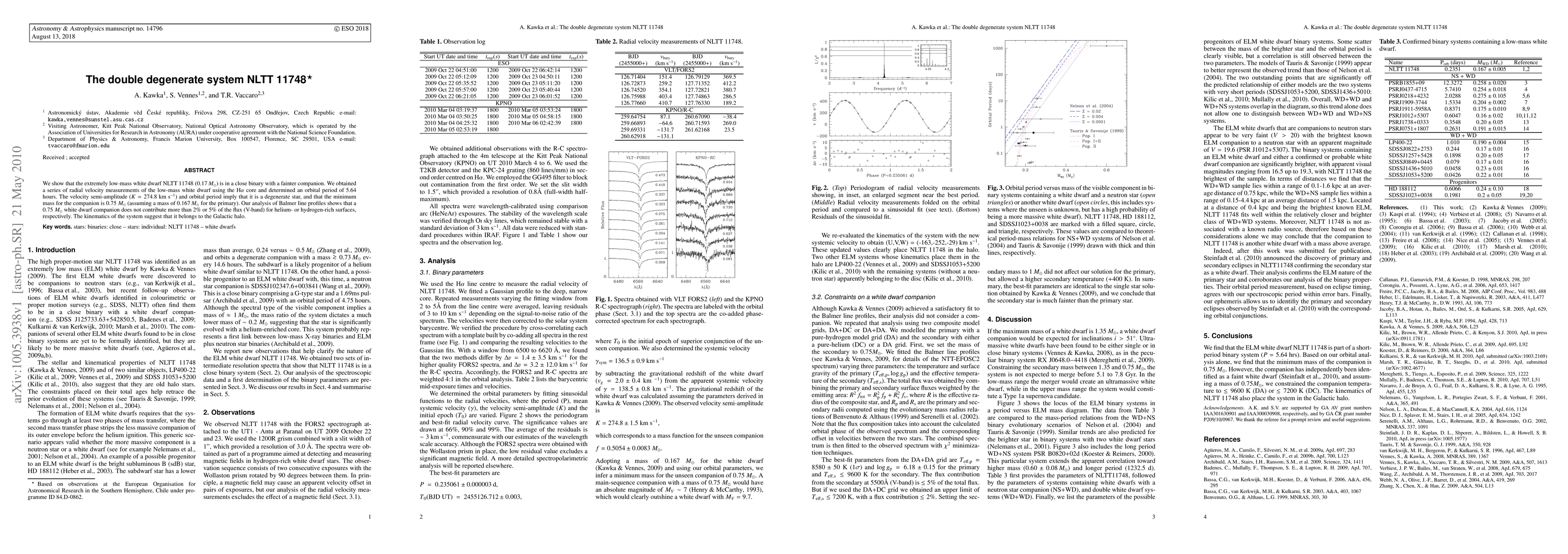 The paper presents a detailed analysis of radial velocity measurements to determine the orbital parameters of the NLTT 11748 binary system, providing insights into the properties of ELM white dwarfs and their companions.