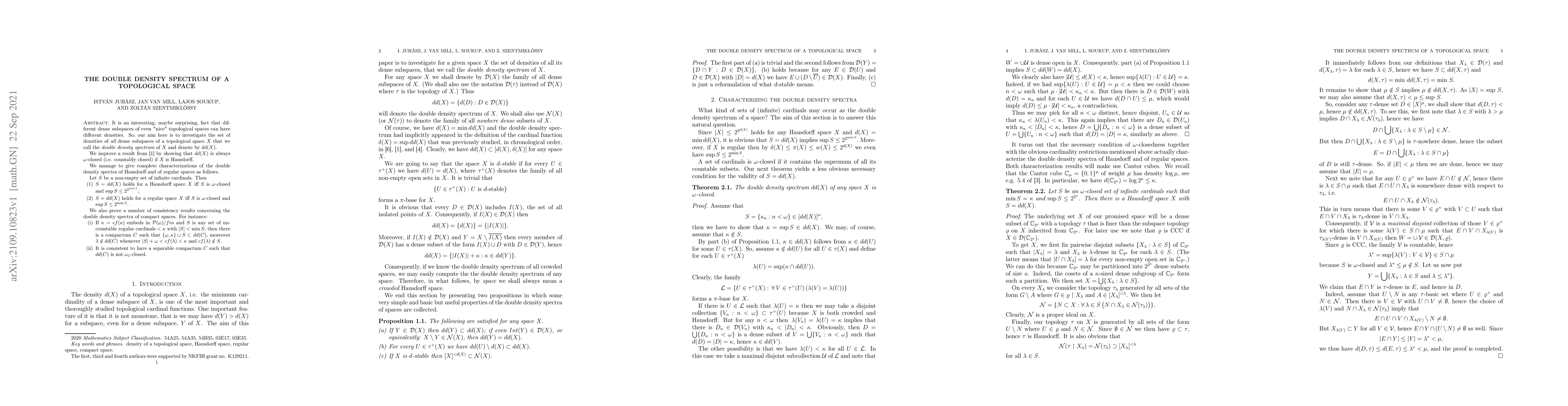 The paper presents new characterizations and consistency results regarding the double density spectrum of topological spaces, enhancing the theoretical framework for understanding dense subspaces in various topological settings.