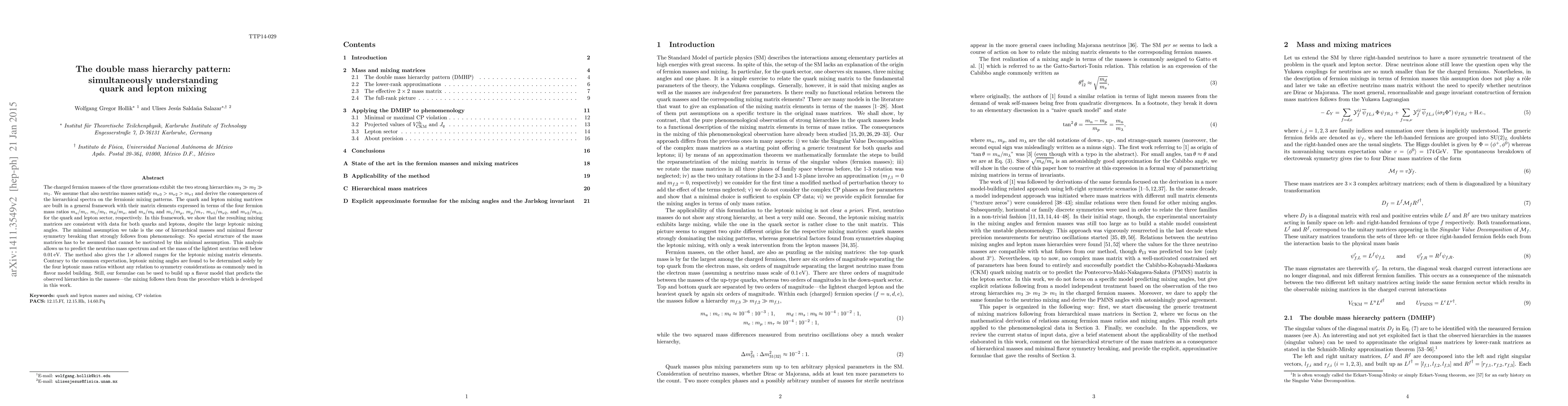 The charged fermion masses of the three generations exhibit the two strong hierarchies m_3 >> m_2 >> m_1. We assume that also neutrino masses satisfy m_{nu 3} > m_{nu 2} > m_{nu 1} and derive the consequences of the hierarchical spectra on the fermionic mixing patterns. The quark and lepton mixing matrices are built in a general framework with their matrix elements expressed in terms of the four fermion mass ratios m_u/m_c, m_c/m_t, m_d/m_s, and m_s/m_b and m_e/m_mu, m_mu/m_tau, m_{nu 1}/m_{nu 2}, and m_{nu 2}/m_{nu 3}, for the quark and lepton sector, respectively. In this framework, we show that the resulting mixing matrices are consistent with data for both quarks and leptons, despite the large leptonic mixing angles. The minimal assumption we take is the one of hierarchical masses and minimal flavour symmetry breaking that strongly follows from phenomenology. No special structure of the mass matrices has to be assumed that cannot be motivated by this minimal assumption. This analysis allows us to predict the neutrino mass spectrum and set the mass of the lightest neutrino well below 0.01 eV. The method also gives the 1 sigma allowed ranges for the leptonic mixing matrix elements. Contrary to the common expectation, leptonic mixing angles are found to be determined solely by the four leptonic mass ratios without any relation to symmetry considerations as commonly used in flavor model building. Still, our formulae can be used to build up a flavor model that predicts the observed hierarchies in the masses---the mixing follows then from the procedure which is developed in this work.