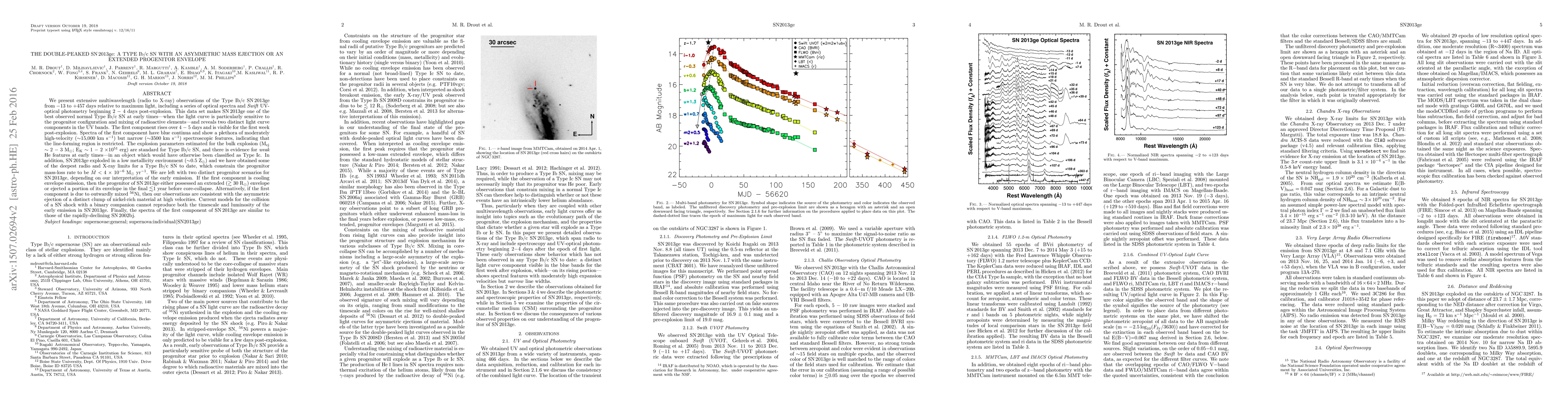 The research paper presents observations of SN2013ge, a Type Ib/c supernova with two distinct light curve components, suggesting either asymmetric mass ejection or an extended progenitor envelope.