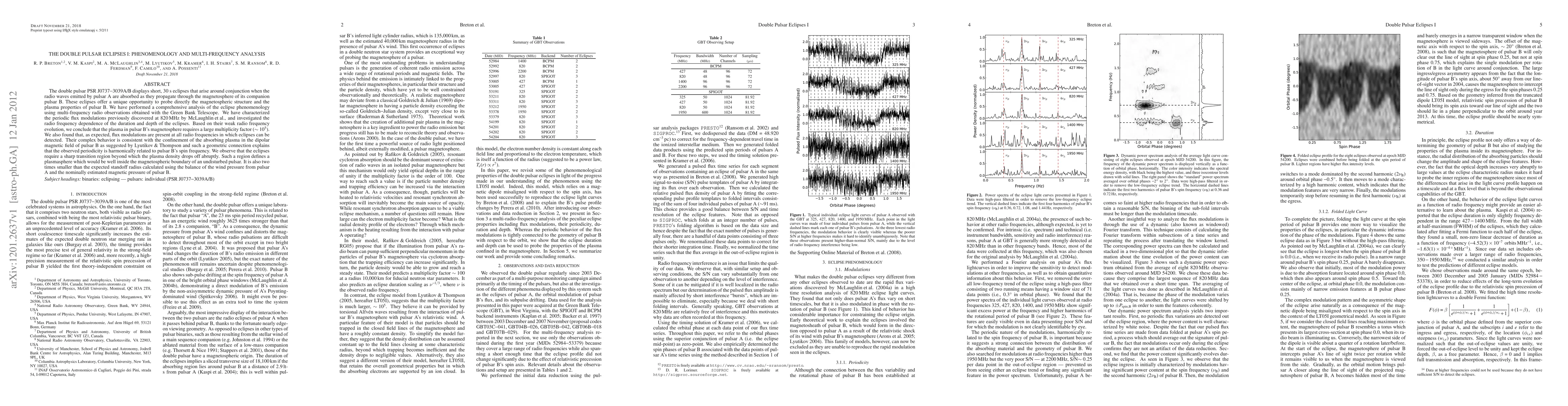 The double pulsar PSR J0737-3039A/B displays short, 30 s eclipses that arise around conjunction when the radio waves emitted by pulsar A are absorbed as they propagate through the magnetosphere of its companion pulsar B. These eclipses offer a unique opportunity to probe directly the magnetospheric structure and the plasma properties of pulsar B. We have performed a comprehensive analysis of the eclipse phenomenology using multi-frequency radio observations obtained with the Green Bank Telescope. We have characterized the periodic flux modulations previously discovered at 820 MHz by McLaughlin et al., and investigated the radio frequency dependence of the duration and depth of the eclipses. Based on their weak radio frequency evolution, we conclude that the plasma in pulsar B's magnetosphere requires a large multiplicity factor (~ 10^5). We also found that, as expected, flux modulations are present at all radio frequencies in which eclipses can be detected. Their complex behavior is consistent with the confinement of the absorbing plasma in the dipolar magnetic field of pulsar B as suggested by Lyutikov & Thompson and such a geometric connection explains that the observed periodicity is harmonically related to pulsar B's spin frequency. We observe that the eclipses require a sharp transition region beyond which the plasma density drops off abruptly. Such a region defines a plasmasphere which would be well inside the magnetospheric boundary of an undisturbed pulsar. It is also two times smaller than the expected standoff radius calculated using the balance of the wind pressure from pulsar A and the nominally estimated magnetic pressure of pulsar B.
