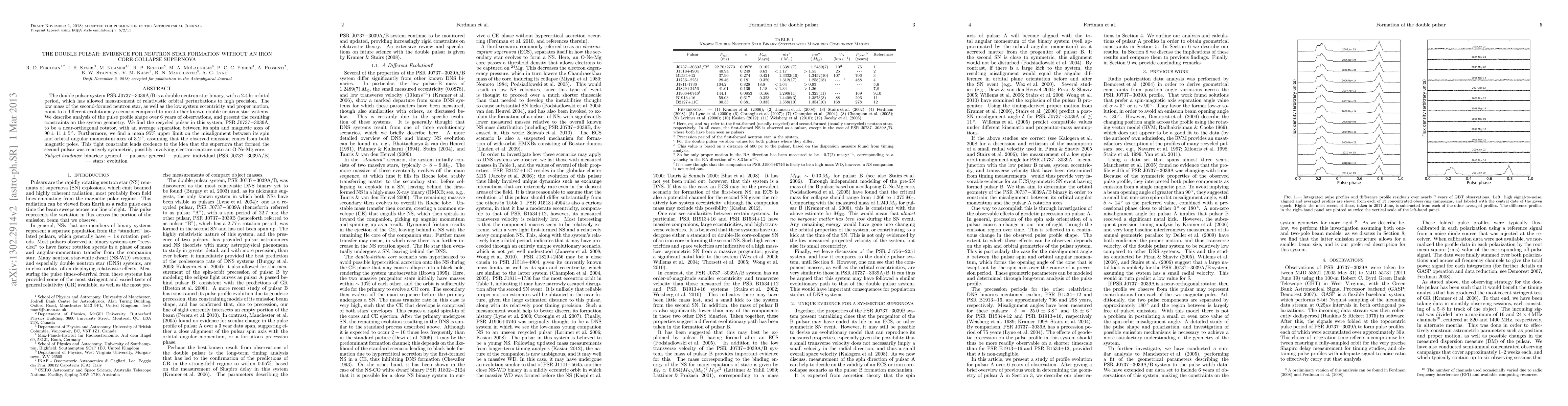 Researchers studied the double pulsar system PSR J0737-3039A/B, finding that the second neutron star was likely formed without an iron core and had a nearly symmetrical supernova explosion.