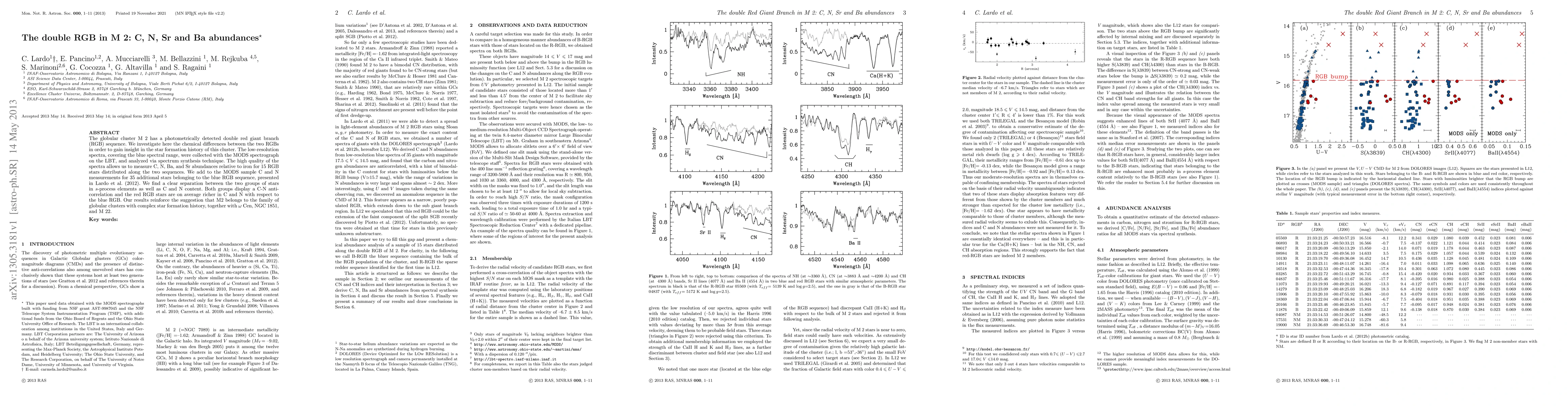 The paper presents a detailed analysis of C, N, Sr, and Ba abundances in M2's double RGB sequence, using high-quality low-resolution spectra and spectrum synthesis technique.