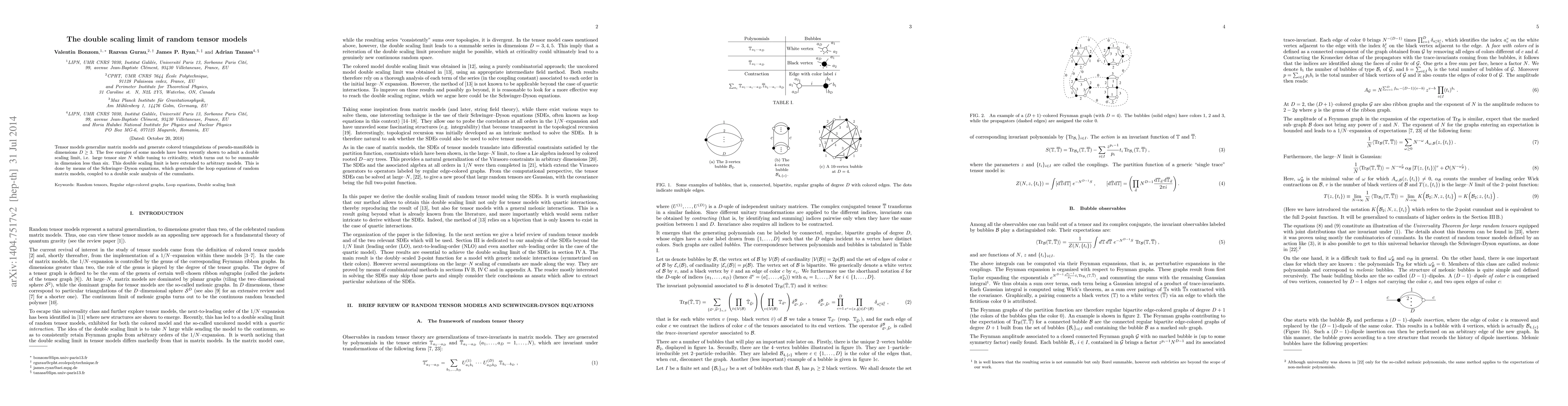 This extension of the double scaling limit to arbitrary tensor models provides a deeper understanding of the critical behavior in high-dimensional random tensor models, with implications for statistical physics and complex systems.