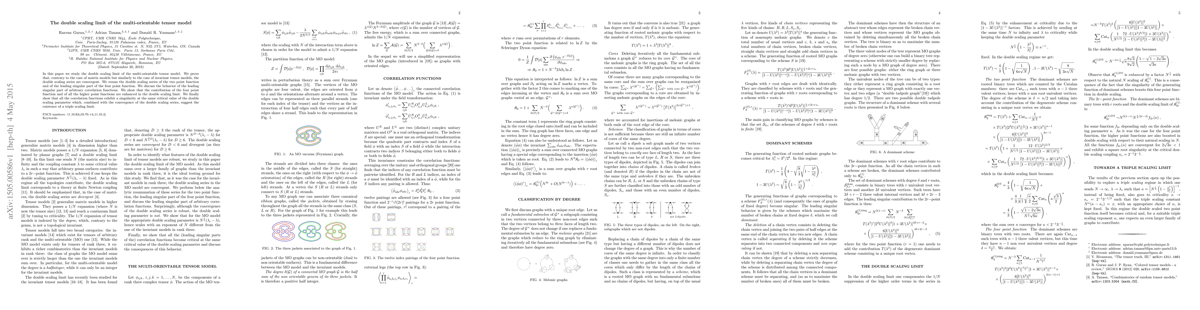 In this paper we study the double scaling limit of the multi-orientable tensor model. We prove that, contrary to the case of matrix models but similarly to the case of invariant tensor models, the double scaling series are convergent. We resum the double scaling series of the two point function and of the leading singular part of the four point function. We discuss the behavior of the leading singular part of arbitrary correlation functions. We show that the contribution of the four point function and of all the higher point functions are enhanced in the double scaling limit. We finally show that all the correlation functions exhibit a singularity at the same critical value of the double scaling parameter which, combined with the convergence of the double scaling series, suggest the existence of a triple scaling limit.