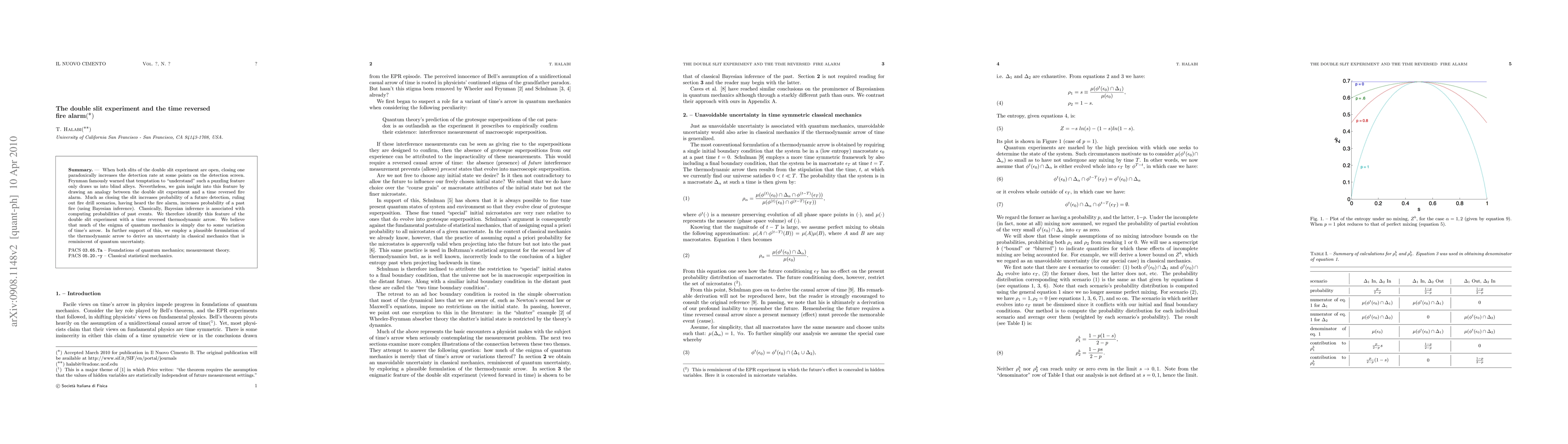 When both slits of the double slit experiment are open, closing one paradoxically increases the detection rate at some points on the detection screen. Feynman famously warned that temptation to "understand" such a puzzling feature only draws us into blind alleys. Nevertheless, we gain insight into this feature by drawing an analogy between the double slit experiment and a time reversed fire alarm. Much as closing the slit increases probability of a future detection, ruling out fire drill scenarios, having heard the fire alarm, increases probability of a past fire (using Bayesian inference). Classically, Bayesian inference is associated with computing probabilities of past events. We therefore identify this feature of the double slit experiment with a time reversed thermodynamic arrow. We believe that much of the enigma of quantum mechanics is simply due to some variation of time's arrow. In further support of this, we employ a plausible formulation of the thermodynamic arrow to derive an uncertainty in classical mechanics that is reminiscent of quantum uncertainty.