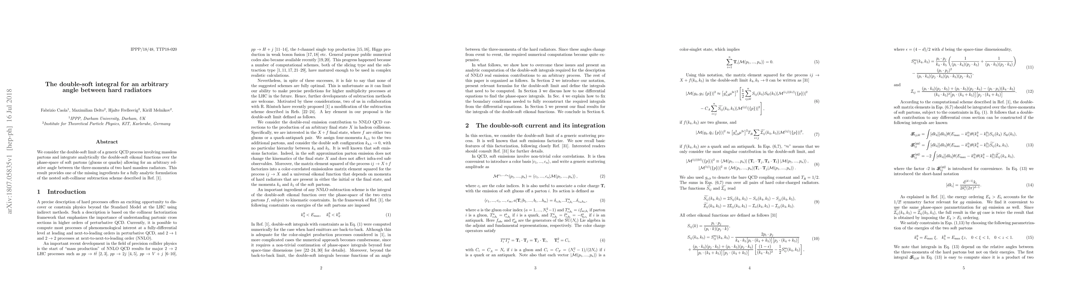 We consider the double-soft limit of a generic QCD process involving massless partons and integrate analytically the double-soft eikonal functions over the phase-space of soft partons (gluons or quarks) allowing for an arbitrary relative angle between the three-momenta of two hard massless radiators. This result provides one of the missing ingredients for a fully analytic formulation of the nested soft-collinear subtraction scheme recently proposed by some of us.