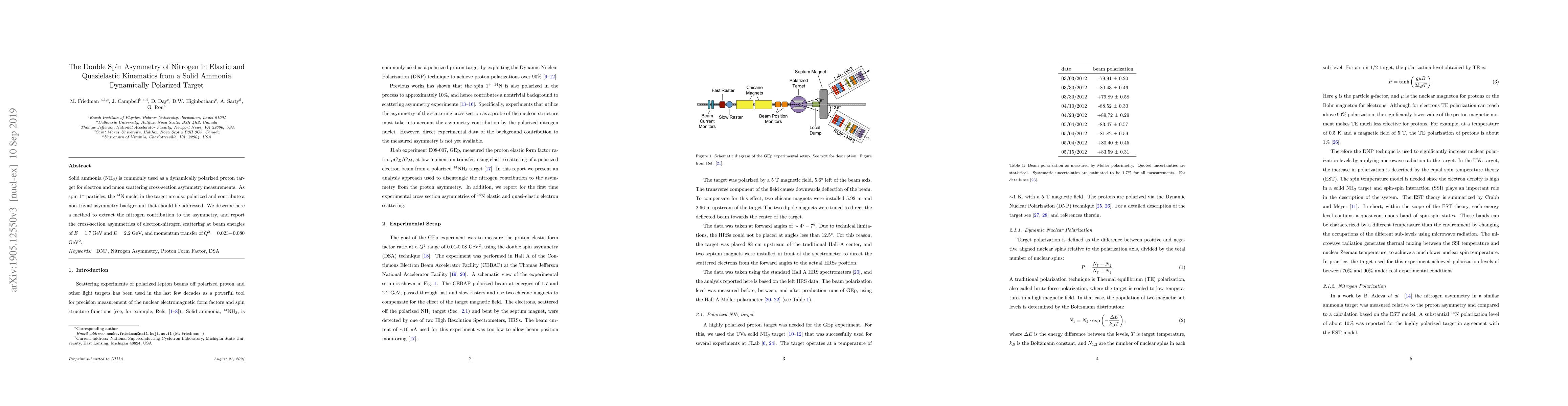 Solid ammonia (NH$_3$) is commonly used as a dynamically polarized proton target for electron and muon scattering cross-section asymmetry measurements. As spin 1$^{+}$ particles, the $^{14}$N nuclei in the target are also polarized and contribute a non-trivial asymmetry background that should be addressed. We describe here a method to extract the nitrogen contribution to the asymmetry, and report the cross-section asymmetries of electron-nitrogen scattering at beam energies of $E=1.7$ GeV and $E=2.2$ GeV, and momentum transfer of $Q^{2}=0.023-0.080$ GeV$^{2}$.