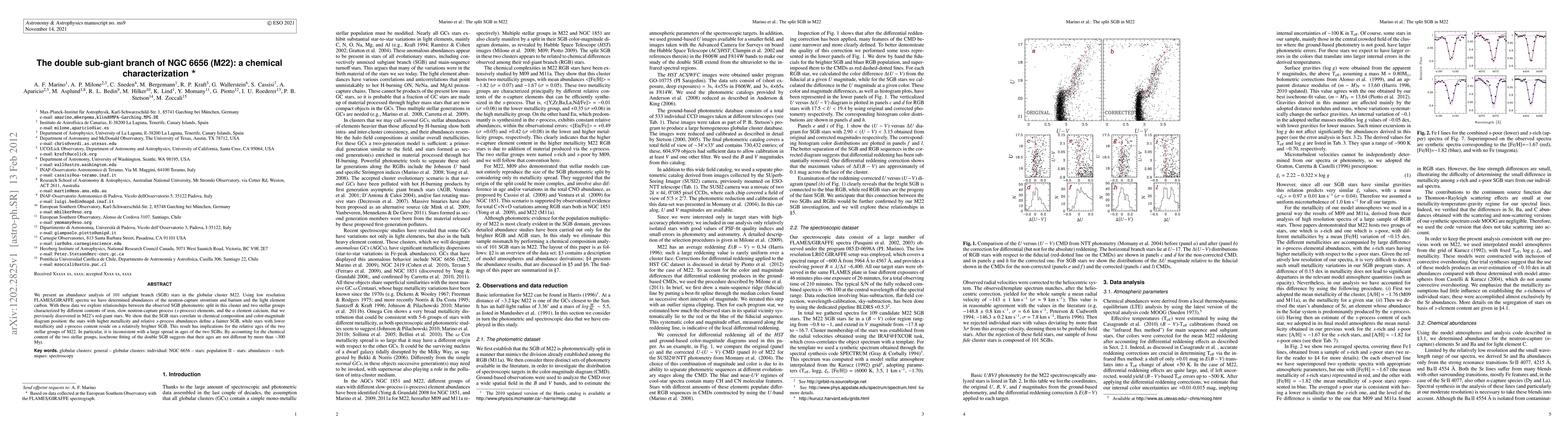 This study analyzes 101 subgiant branch stars in M22, a globular cluster, to explore relationships between stellar composition and position on the color-magnitude diagram, finding that metallicity and s-process element content define two distinct SGB populations with similar ages.