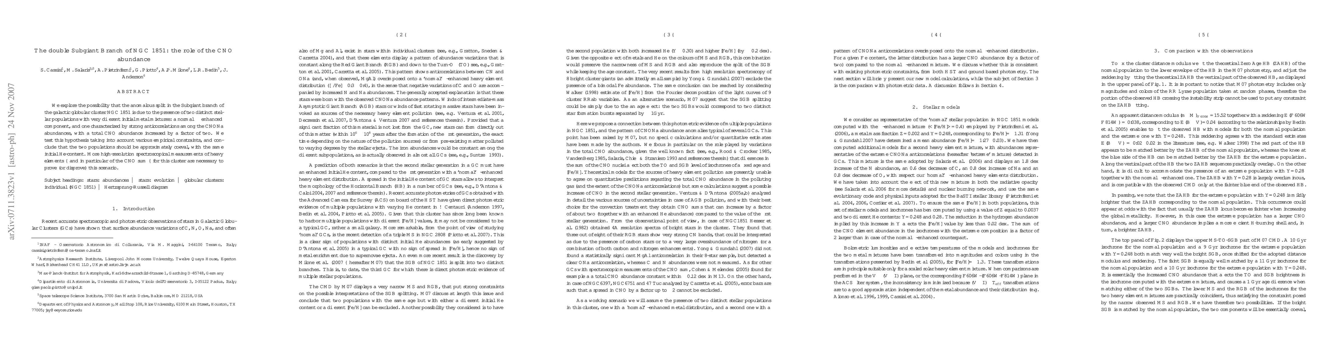 We explore the possibility that the anomalous split in the Subgiant branch of the galactic globular cluster NGC 1851 is due to the presence of two distinct stellar populations with very different initial metal mixtures: a normal alpha-enhanced component, and one characterized by strong anticorrelations among the CNONa abundances, with a total CNO abundance increased by a factor of two. We test this hypothesis taking into account various empirical constraints, and conclude that the two populations should be approximately coeval, with the same initial He-content. More high-resolution spectroscopical measurements of heavy elements -- and in particular of the CNO sum -- for this cluster are necessary to prove (or disprove) this scenario.