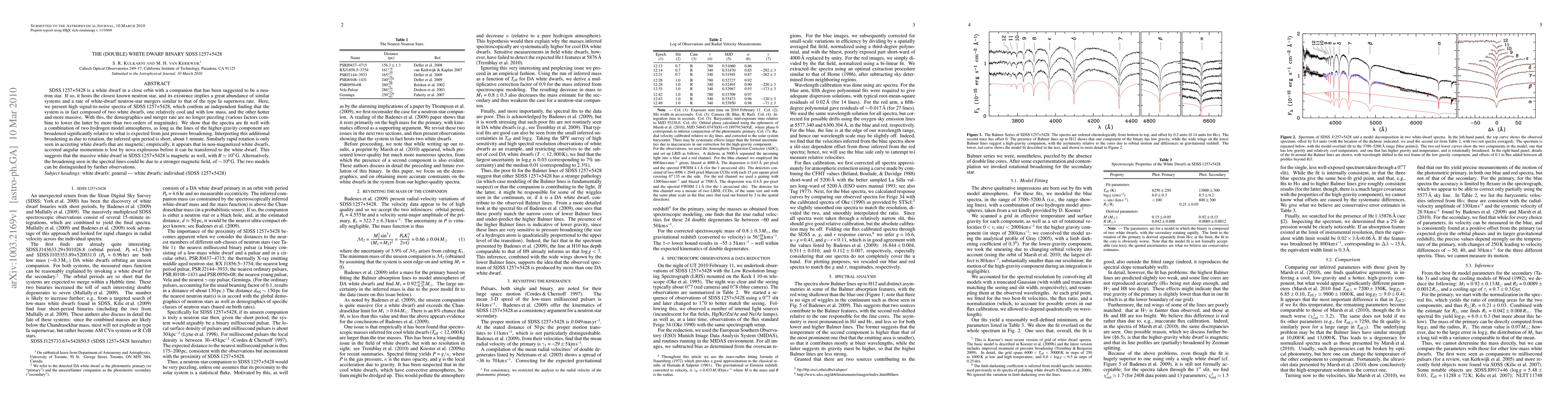 This paper confirms that SDSS 1257+5428 is a binary system composed of two white dwarfs, resolving previous speculations about a neutron star companion. The system's high-speed rotation and spectral line broadening suggest either a strong magnetic field or the presence of a magnetic white dwarf, which could help explain the lower merger rates of such systems.