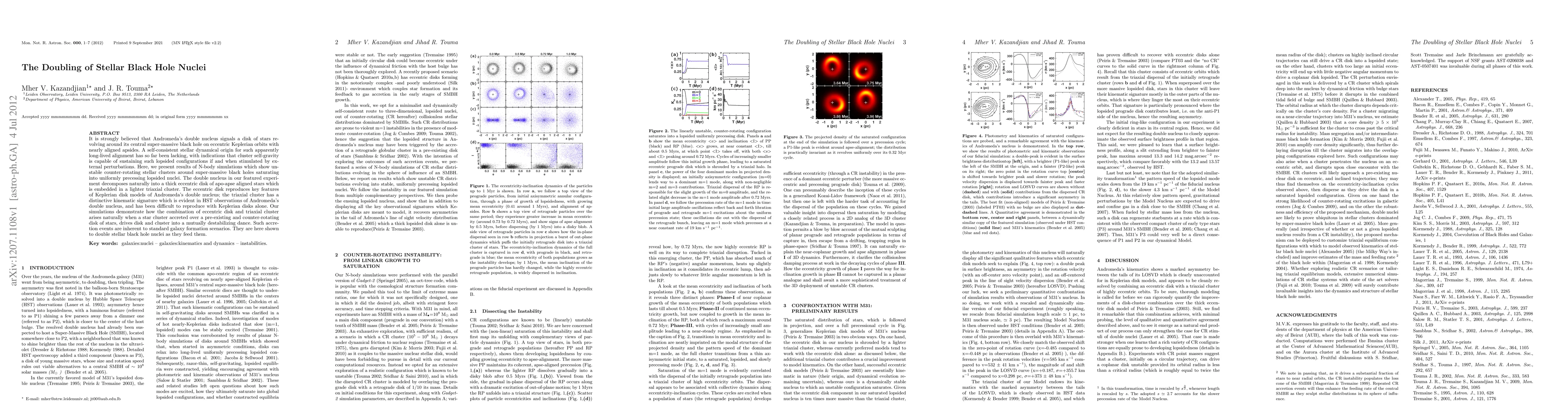 It is strongly believed that Andromeda's double nucleus signals a disk of stars revolving around its central super-massive black hole on eccentric Keplerian orbits with nearly aligned apsides. A self-consistent stellar dynamical origin for such apparently long-lived alignment has so far been lacking, with indications that cluster self-gravity is capable of sustaining such lopsided configurations if and when stimulated by external perturbations. Here, we present results of N-body simulations which show unstable counter-rotating stellar clusters around super-massive black holes saturating into uniformly precessing lopsided nuclei. The double nucleus in our featured experiment decomposes naturally into a thick eccentric disk of apo-apse aligned stars which is embedded in a lighter triaxial cluster. The eccentric disk reproduces key features of Keplerian disk models of Andromeda's double nucleus; the triaxial cluster has a distinctive kinematic signature which is evident in HST observations of Andromeda's double nucleus, and has been difficult to reproduce with Keplerian disks alone. Our simulations demonstrate how the combination of eccentric disk and triaxial cluster arises naturally when a star cluster accreted over a pre-existing and counter-rotating disk of stars, drives disk and cluster into a mutually destabilizing dance. Such accretion events are inherent to standard galaxy formation scenarios. They are here shown to double stellar black hole nuclei as they feed them.