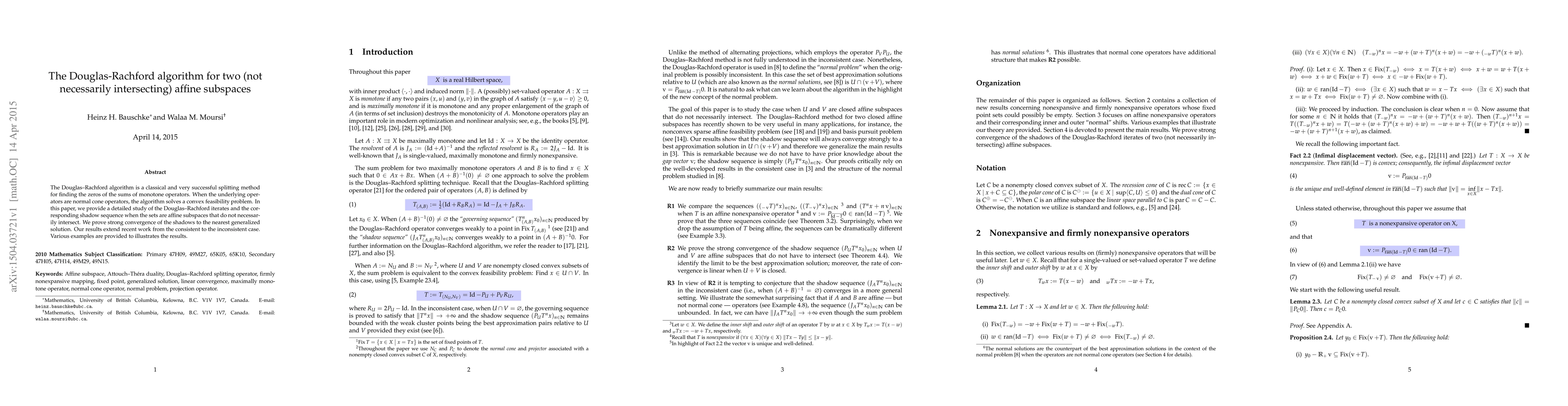 This paper studies the Douglas-Rachford algorithm for finding intersections of affine subspaces that may not intersect, proving strong convergence of the shadow sequence to the nearest generalized solution, extending previous results from consistent to inconsistent cases. Examples are provided to illustrate the theoretical findings.