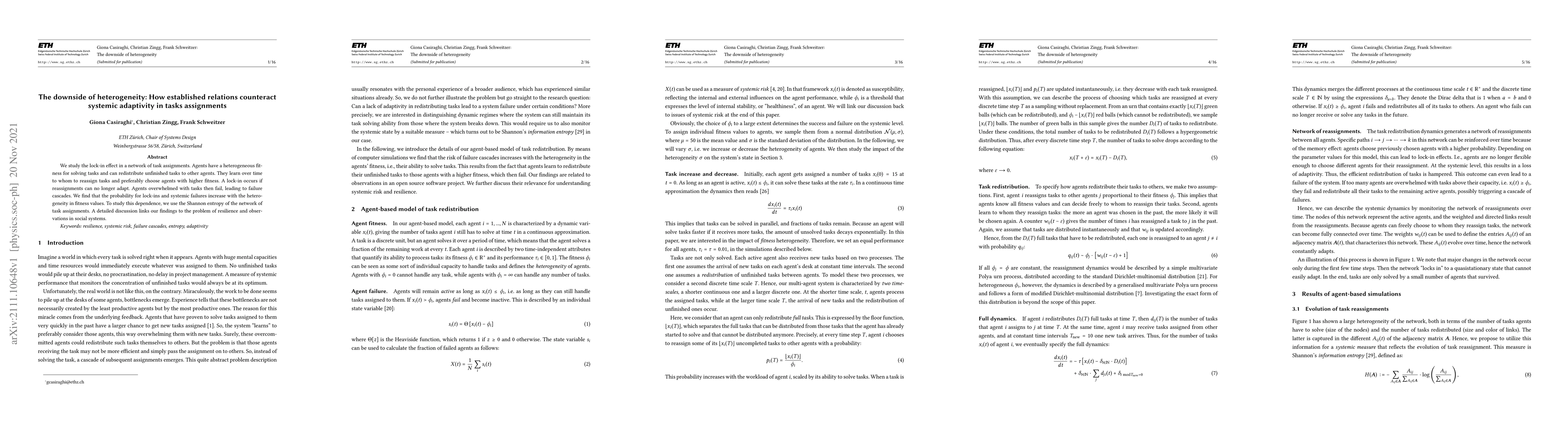 This study finds that increased heterogeneity in task assignment leads to a higher probability of lock-ins and systemic failures, ultimately causing agents to fail due to overwhelming tasks.