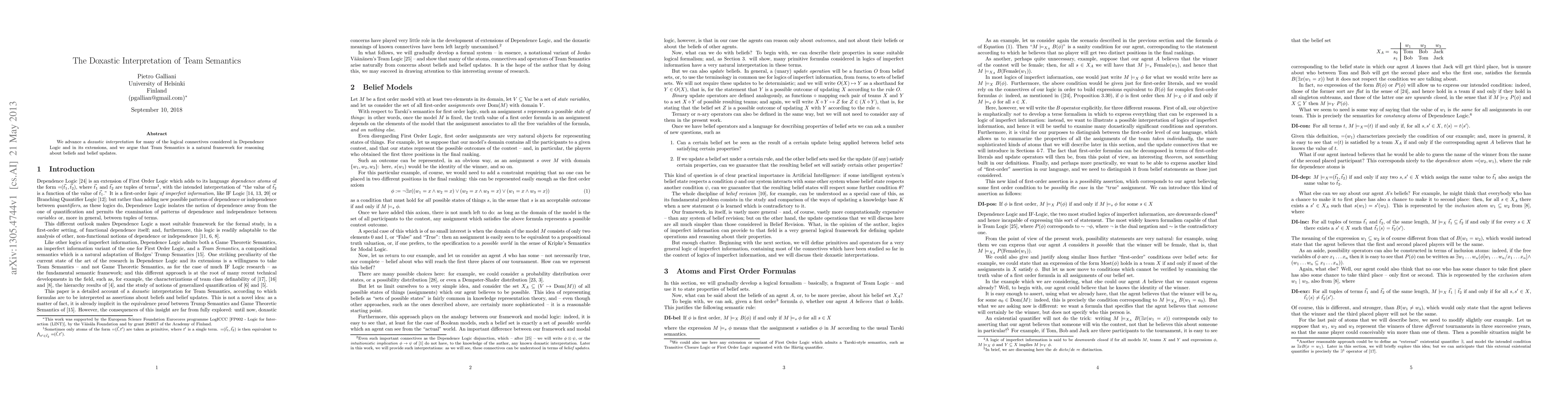 This paper proposes a doxastic interpretation for logical connectives in Dependence Logic and its extensions, asserting that Team Semantics provides a suitable framework for reasoning about beliefs and their updates.