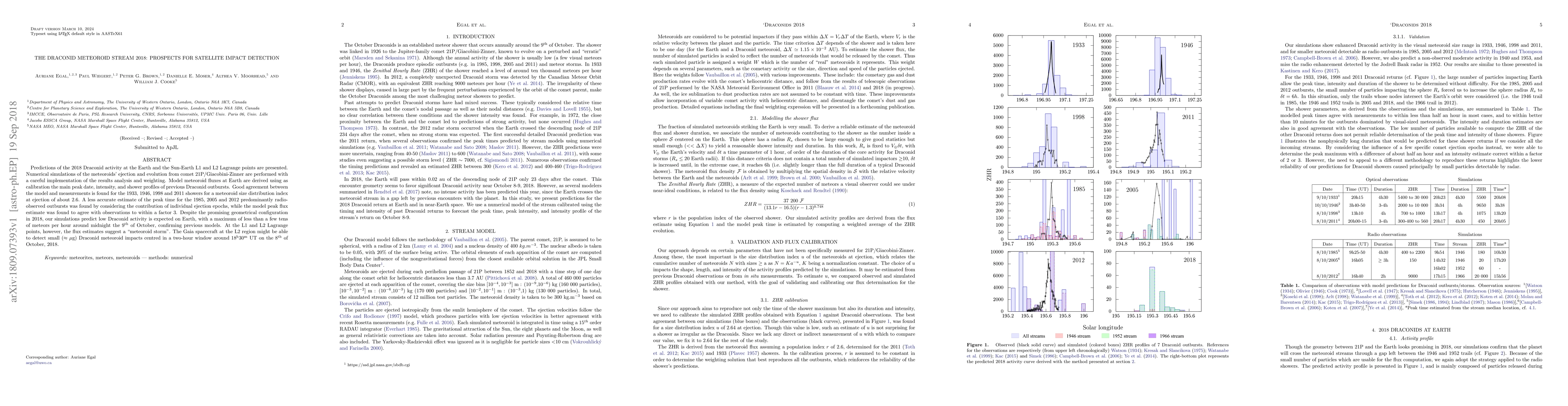 A study predicts low Draconid meteoroid activity on Earth in 2018, with a maximum of fewer than tens of meteors per hour, but suggests a 'meteoroid storm' at the Sun-Earth Lagrange points where the Gaia spacecraft may detect small impacts.