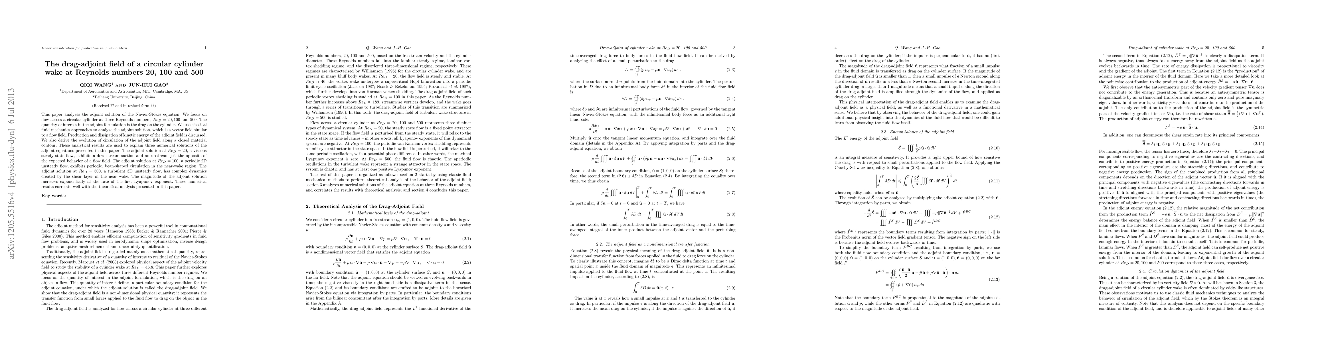 This paper analyzes the drag-adjoint field of a circular cylinder wake at three Reynolds numbers, revealing complex dynamics and unexpected behaviors in the adjoint solution compared to expected flow fields.