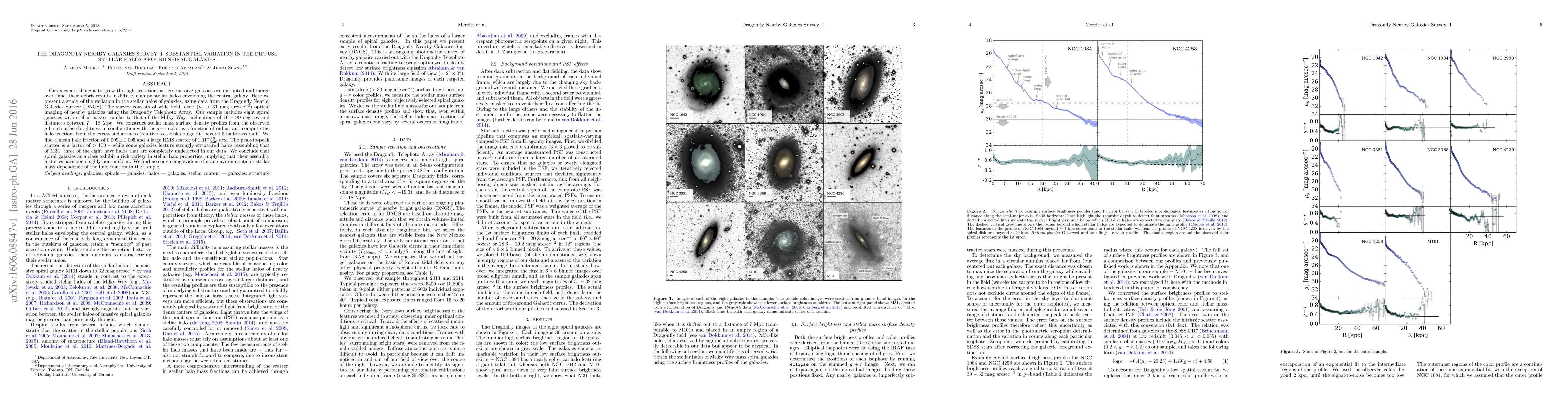 The Dragonfly Nearby Galaxies Survey reveals significant variation in the diffuse stellar halos of spiral galaxies, with some exhibiting structured halos and others having completely undetectable halos, suggesting highly non-uniform assembly histories. No clear environmental or stellar mass dependence of halo fractions is observed.