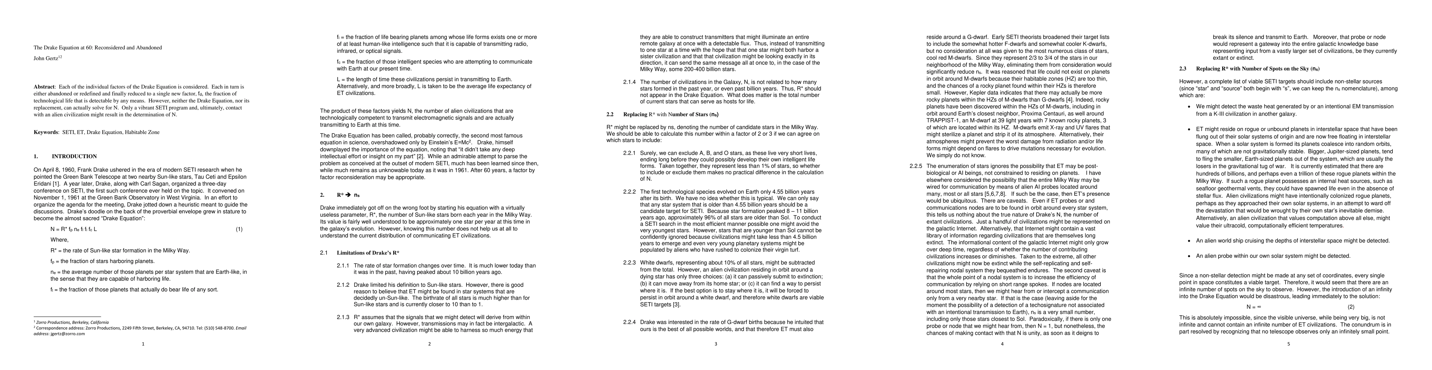 Each of the individual factors of the Drake Equation is considered. Each in turn is either abandoned or redefined and finally reduced to a single new factor, fd, the fraction of technological life that is detectable by any means. However, neither the Drake Equation, nor its replacement, can actually solve for N. Only a vibrant SETI program and, ultimately, contact with an alien civilization might result in the determination of N.