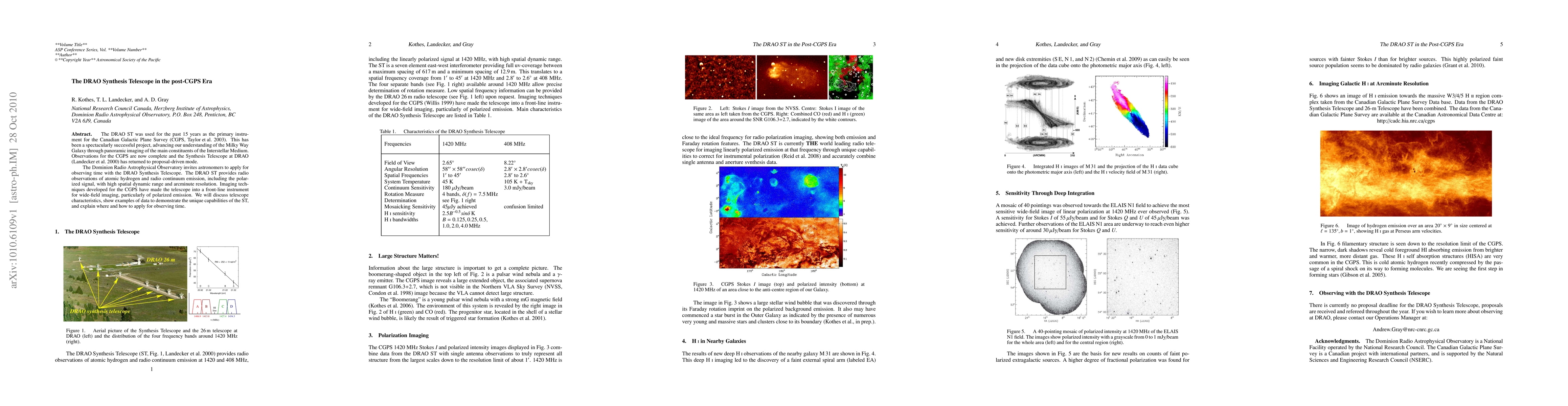 The DRAO Synthesis Telescope has concluded the Canadian Galactic Plane Survey, showcasing its success in advancing Milky Way studies through high-resolution imaging. The telescope now invites applications for proposal-driven observations, highlighting its capabilities in atomic hydrogen and polarized emission imaging.