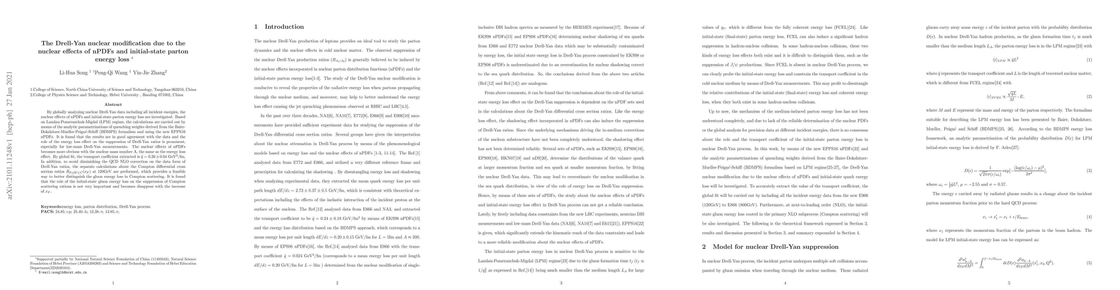 This paper investigates nuclear effects in Drell-Yan processes through global analysis of data, focusing on nuclear parton distribution functions (nPDFs) and initial-state parton energy loss. The results show significant suppression effects, especially for low-mass Drell-Yan, with a transport coefficient of $\hat{q}=0.26\pm0.04$ GeV$^{2}$/fm, and indicate that gluon energy loss plays a less prominent role in Compton scattering ratios.