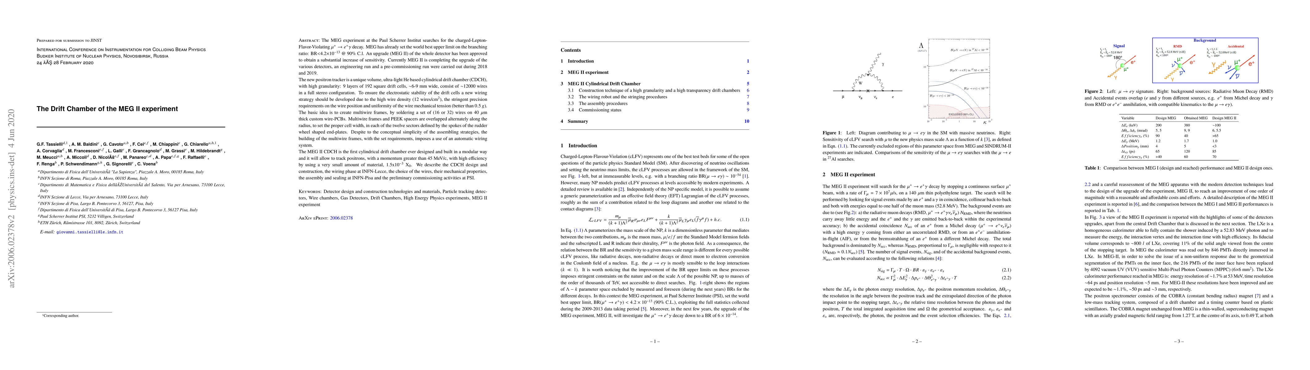 The MEG II experiment aims to enhance the sensitivity of the MEG detector to search for the rare mu+ -> e+ gamma decay. The new cylindrical drift chamber (CDCH) features a high-granularity, ultra-light helium-based design with 9 layers of 192 square drift cells, employing an innovative multiwire frame wiring strategy to meet stringent precision requirements.