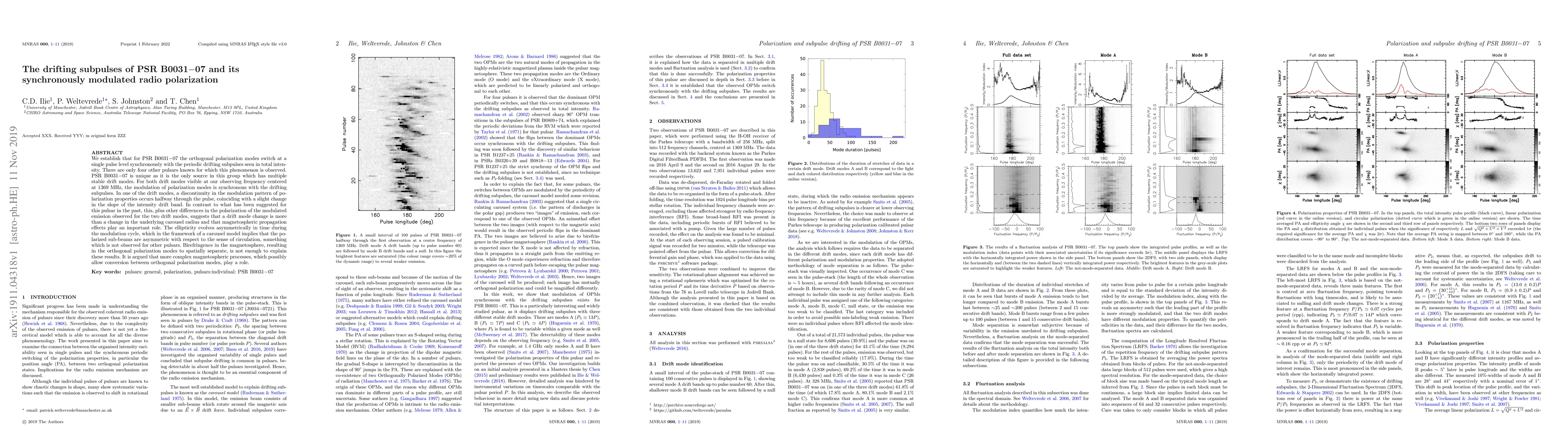 Researchers discovered that PSR B0031-07 pulsar exhibits unique polarized emission patterns synchronized with drifting subpulses, challenging previous explanations for this phenomenon.