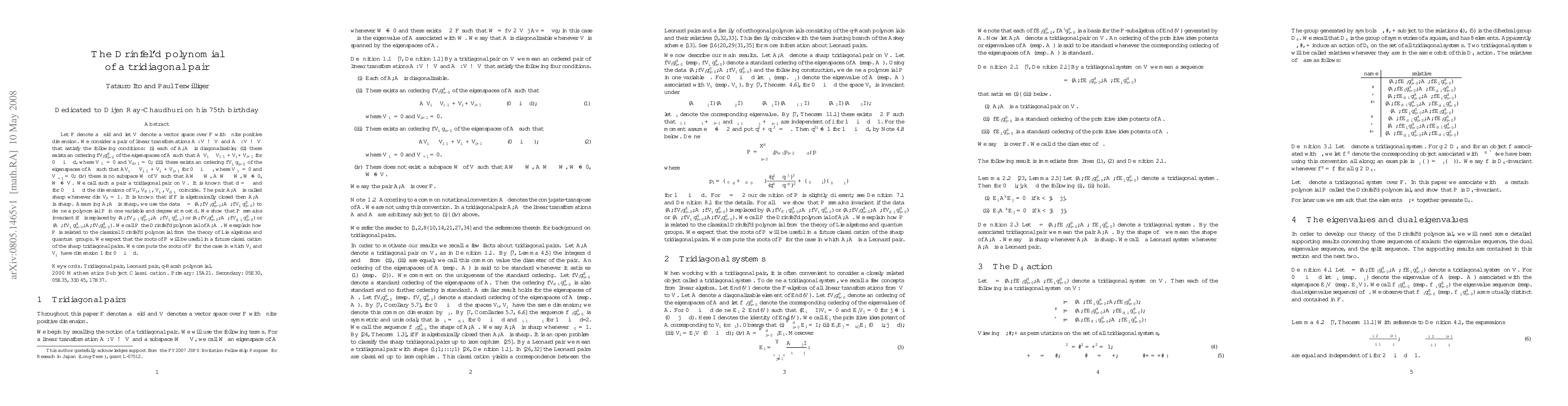 Let $K$ denote a field and let $V$ denote a vector space over $K$ with finite positive dimension. We consider a pair of linear transformations $A:V \to V$ and $A^*:V \to V$ that satisfy the following conditions: (i) each of $A,A^*$ is diagonalizable; (ii) there exists an ordering $\{V_i\}{i=0}^d$ of the eigenspaces of $A$ such that $A^* V_i \subseteq V_{i-1} + V_{i} + V_{i+1}$ for $0 \leq i \leq d$, where $V_{-1}=0$ and $V_{d+1}=0$; (iii) there exists an ordering $\{V^*_i\}{i=0}^\delta$ of the eigenspaces of $A^*$ such that $A V^*_i \subseteq V^*_{i-1} + V^*_{i} + V^*_{i+1}$ for $0 \leq i \leq \delta$, where $V^*_{-1}=0$ and $V^*_{\delta+1}=0$; (iv) there is no subspace $W$ of $V$ such that $AW \subseteq W$, $A^* W \subseteq W$, $W \neq 0$, $W \neq V$. We call such a pair a {\it tridiagonal pair} on $V$. It is known that $d=\delta$ and for $0 \leq i \leq d$ the dimensions of $V_i$, $V_{d-i}$, $V^*_i$, $V^*_{d-i}$ coincide. The pair $A,A^*$ is called {\it sharp} whenever $\dim V_0=1$. It is known that if $K$ is algebraically closed then $A,A^*$ is sharp. Assuming $A,A^*$ is sharp, we use the data $\Phi=(A; \{V_i\}{i=0}^d; A^*; \{V^*_i\}{i=0}^d)$ to define a polynomial $P$ in one variable and degree at most $d$. We show that $P$ remains invariant if $\Phi$ is replaced by $(A;\{V_{d-i}\}{i=0}^d; A^*; \{V^*_i\}{i=0}^d)$ or $(A;\{V_i\}{i=0}^d; A^*; \{V^*_{d-i}\}{i=0}^d)$ or $(A^*; \{V^*_i\}{i=0}^d; A; \{V_i\}{i=0}^d)$. We call $P$ the {\it Drinfel'd polynomial} of $A,A^*$. We explain how $P$ is related to the classical Drinfel'd polynomial from the theory of Lie algebras and quantum groups. We expect that the roots of $P$ will be useful in a future classification of the sharp tridiagonal pairs. We compute the roots of $P$ for the case in which $V_i$ and $V^*_i$ have dimension 1 for $0 \leq i \leq d$.