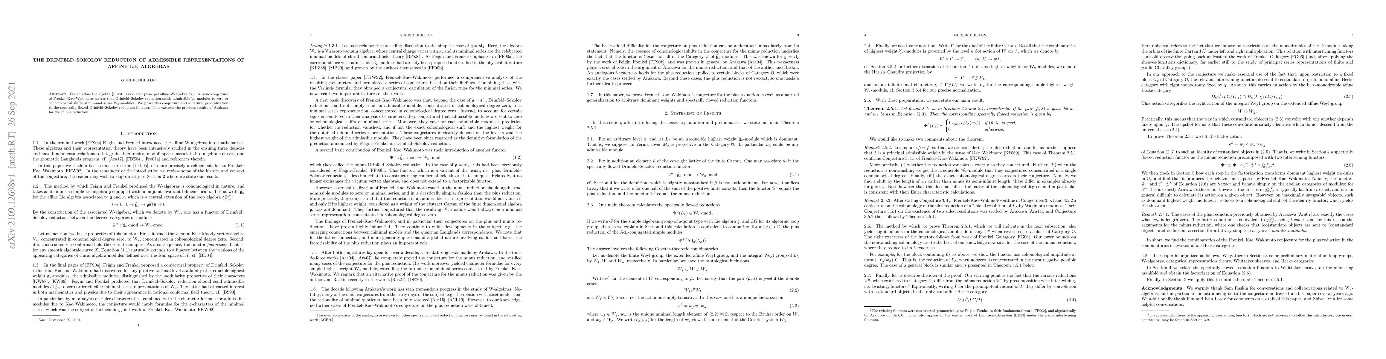 Fix an affine Lie algebra $\widehat{\mathfrak{g}}_\kappa$ with associated principal affine W-algebra $\mathcal{W}_\kappa$. A basic conjecture of Frenkel--Kac--Wakimoto asserts that Drinfeld--Sokolov reduction sends admissible $\widehat{\mathfrak{g}}_\kappa$-modules to zero or cohomological shifts of minimal series $\mathcal{W}_\kappa$-modules. We prove this conjecture and a natural generalization to the spectrally flowed Drinfeld--Sokolov reduction functors. This extends the previous results of Arakawa for the minus reduction.