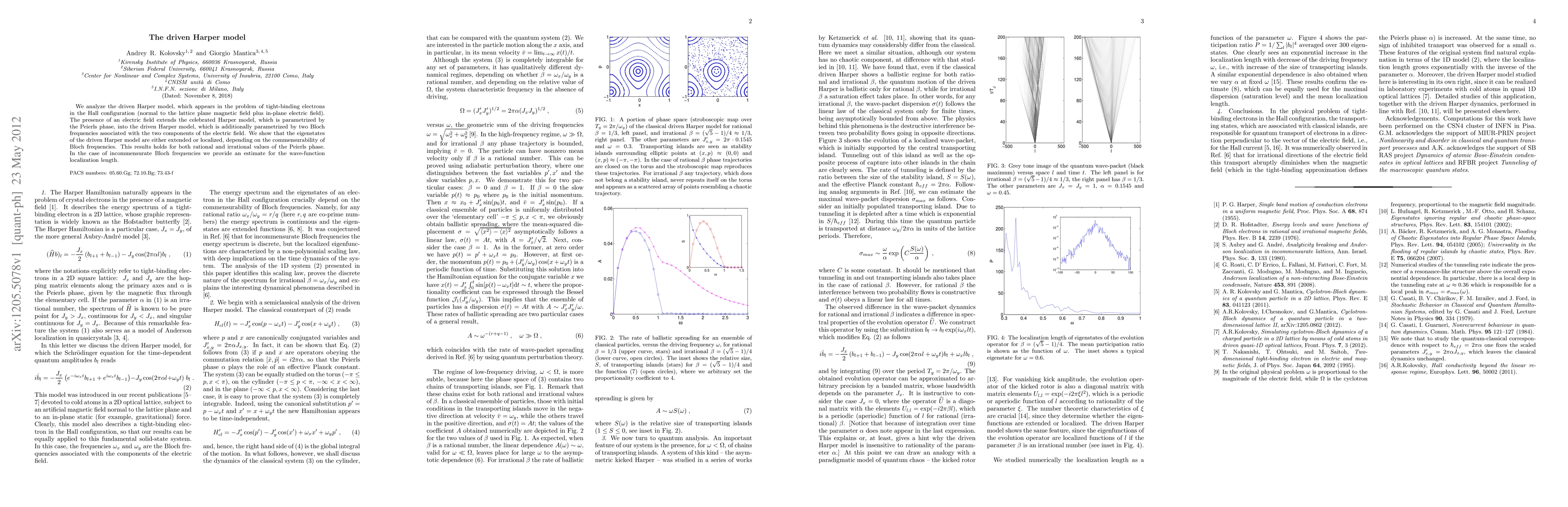 We analyze the driven Harper model, which appears in the problem of tight-binding electrons in the Hall configuration (normal to the lattice plane magnetic field plus in-plane electric field). The presence of an electric field extends the celebrated Harper model, which is parametrized by the Peierls phase, into the driven Harper model, which is additionally parametrized by two Bloch frequencies associated with the two components of the electric field. We show that the eigenstates of the driven Harper model are either extended or localized, depending on the commensurability of Bloch frequencies. This results holds for both rational and irrational values of the Peierls phase. In the case of incommensurate Bloch frequencies we provide an estimate for the wave-function localization length.