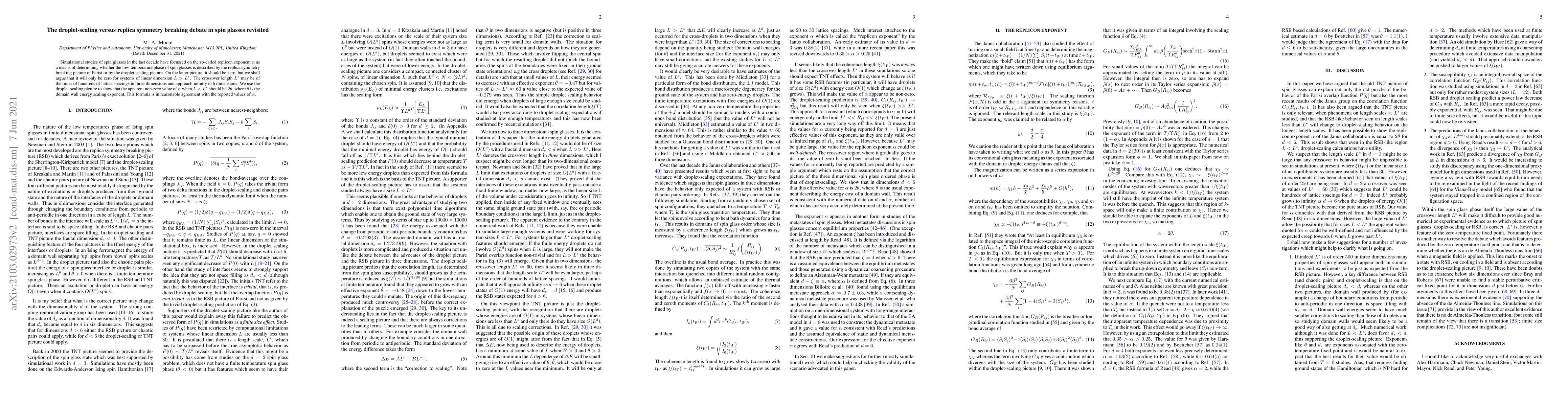 Researchers revisited the debate on spin glasses, arguing that the replica symmetry breaking picture may only apply for systems of linear dimension greater than a crossover length $L^*$, leading to a reevaluation of the replicon exponent $ heta$.