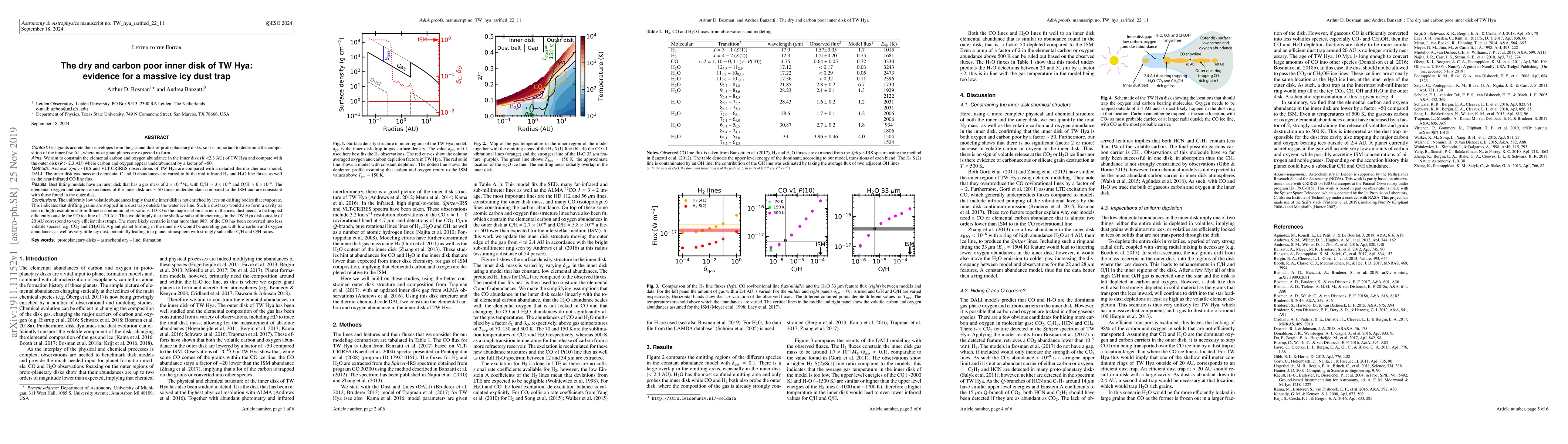 This study reveals that the inner disk of TW Hya is dry and carbon poor, suggesting a massive icy dust trap beyond the water ice line. The inner disk shows low volatile abundances, indicating that drifting grains are trapped outside the CO ice line, forming efficient dust traps and potentially influencing the composition of forming gas giants.