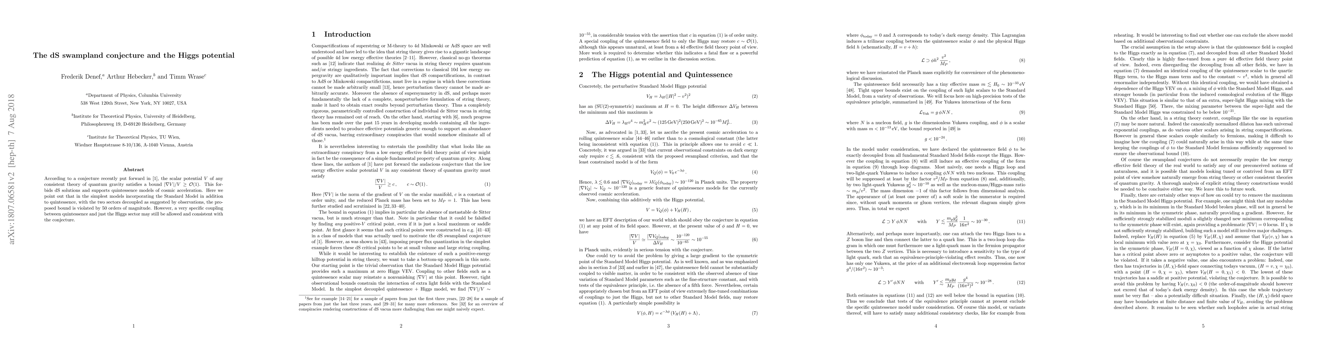 According to a conjecture recently put forward in arXiv:1806.08362, the scalar potential $V$ of any consistent theory of quantum gravity satisfies a bound $|\nabla V|/V \geq {\cal O}(1)$. This forbids dS solutions and supports quintessence models of cosmic acceleration. Here we point out that in the simplest models incorporating the Standard Model in addition to quintessence, with the two sectors decoupled as suggested by observations, the proposed bound is violated by 50 orders of magnitude. However, a very specific coupling between quintessence and just the Higgs sector may still be allowed and consistent with the conjecture.