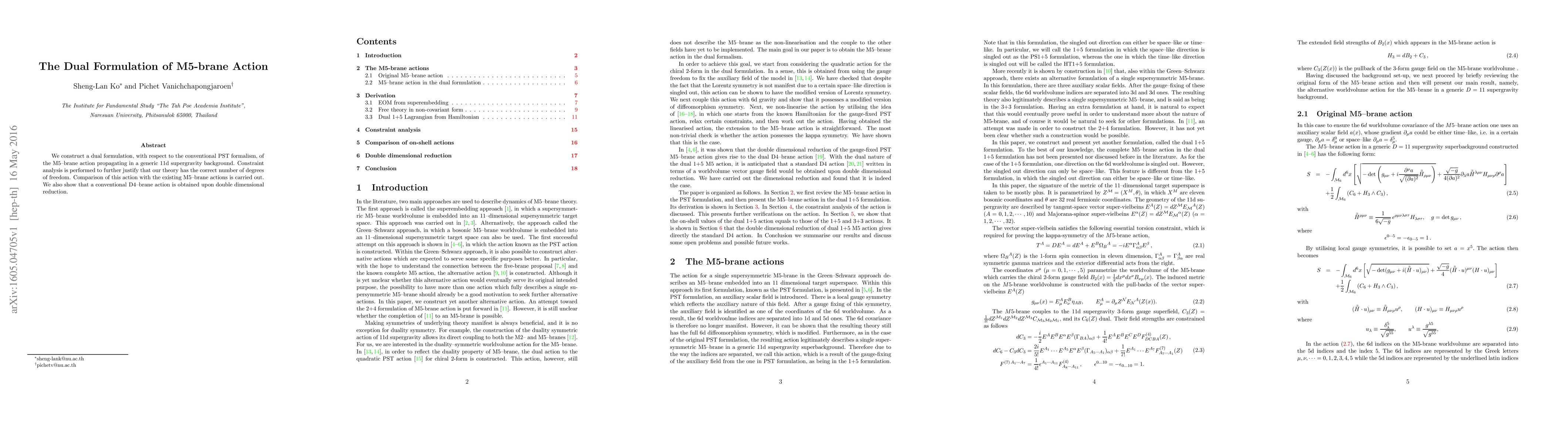 This paper develops a dual formulation for the M5-brane action in 11-dimensional supergravity, verifies its degree of freedom through constraint analysis, and compares it with existing actions, revealing a D4-brane upon double dimensional reduction.
