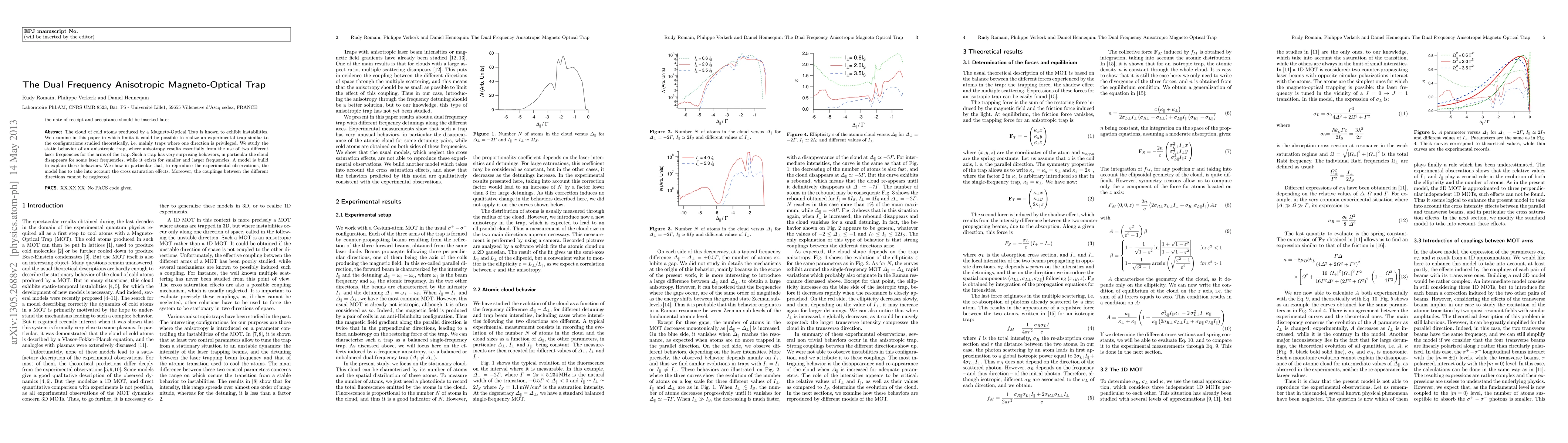 This paper explores the behavior of cold atom clouds in anisotropic magneto-optical traps using dual laser frequencies. It reveals surprising phenomena like cloud disappearance at certain frequencies and emphasizes the importance of cross saturation effects and directional couplings in the trap's performance.