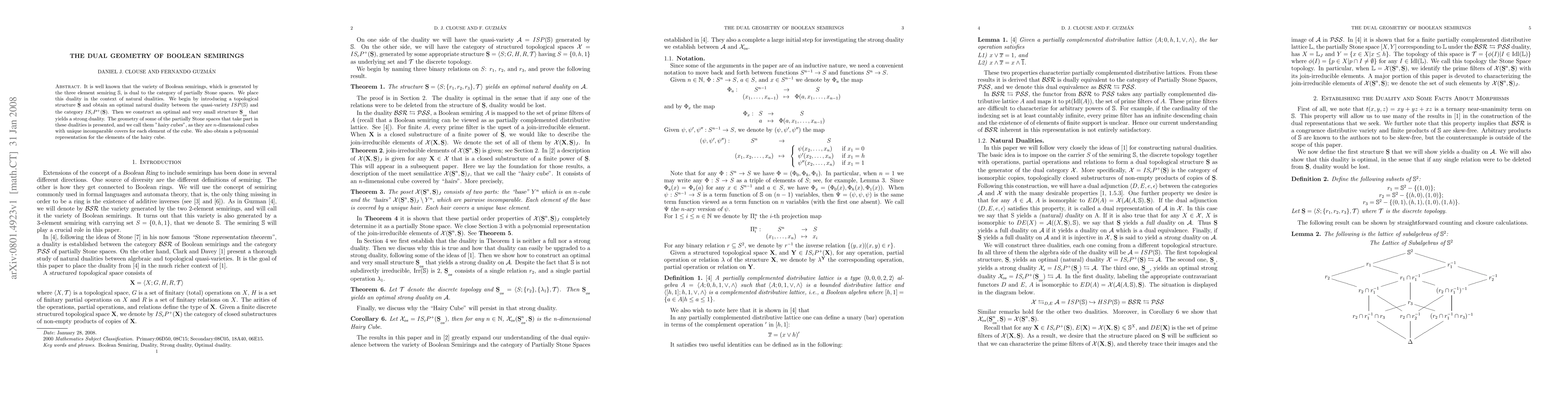 This paper explores the duality between the variety of Boolean semirings and partially Stone spaces, introducing a topological structure \uS that establishes an optimal natural duality. It also constructs a small structure \uS_os for strong duality and presents "hairy cubes," n-dimensional spaces with unique incomparable covers, along with a polynomial representation for their elements.
