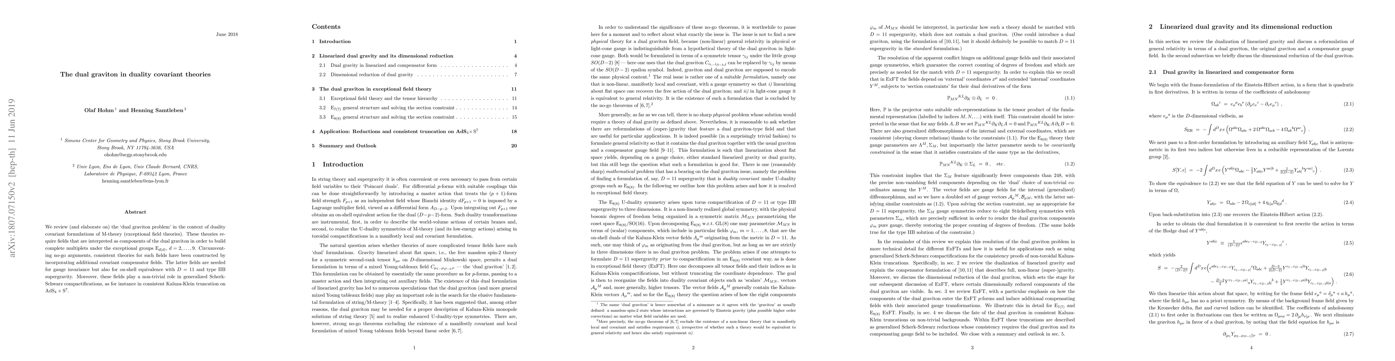 Researchers review the dual graviton problem in duality covariant theories, proposing solutions with additional compensator fields to build complete multiplets under exceptional groups, enabling on-shell equivalence with type IIB supergravity.