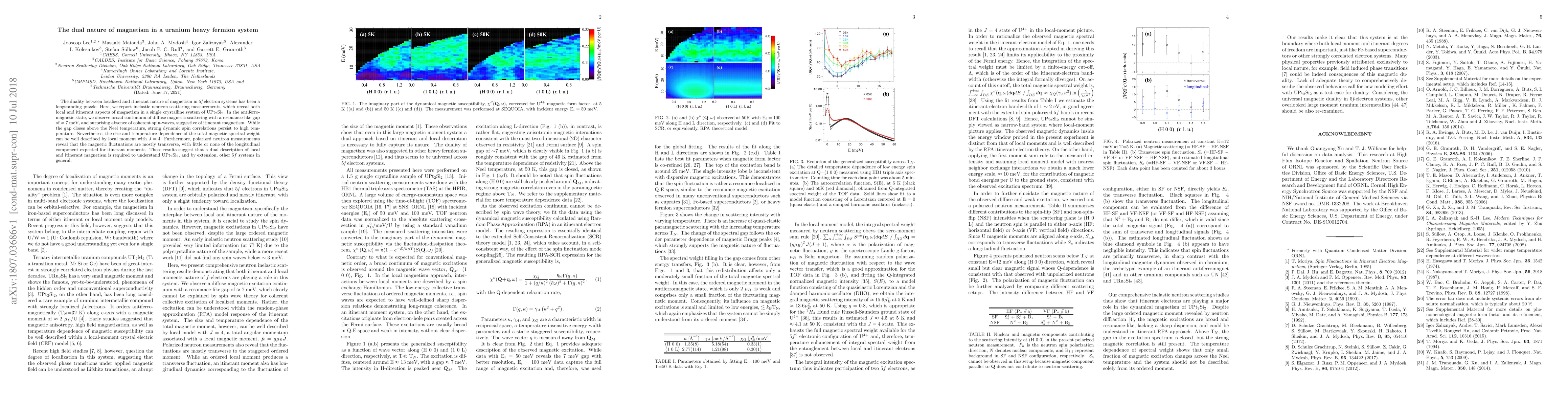 This study reveals dual aspects of magnetism in the uranium-based heavy fermion system UPt$_{2}$Si$_{2}$, showing both local and itinerant magnetism through neutron scattering, indicating complex magnetic interactions. The findings suggest a dual description is necessary to understand the magnetism in 5f electron systems.